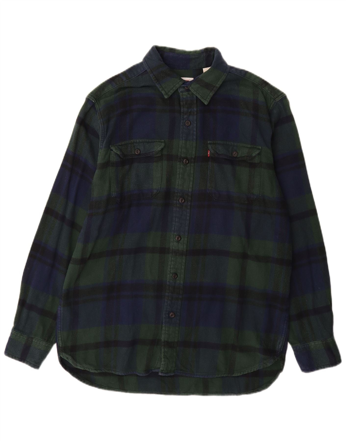 LEVI'S Mens Flannel Shirt Medium Green Check Cotton
