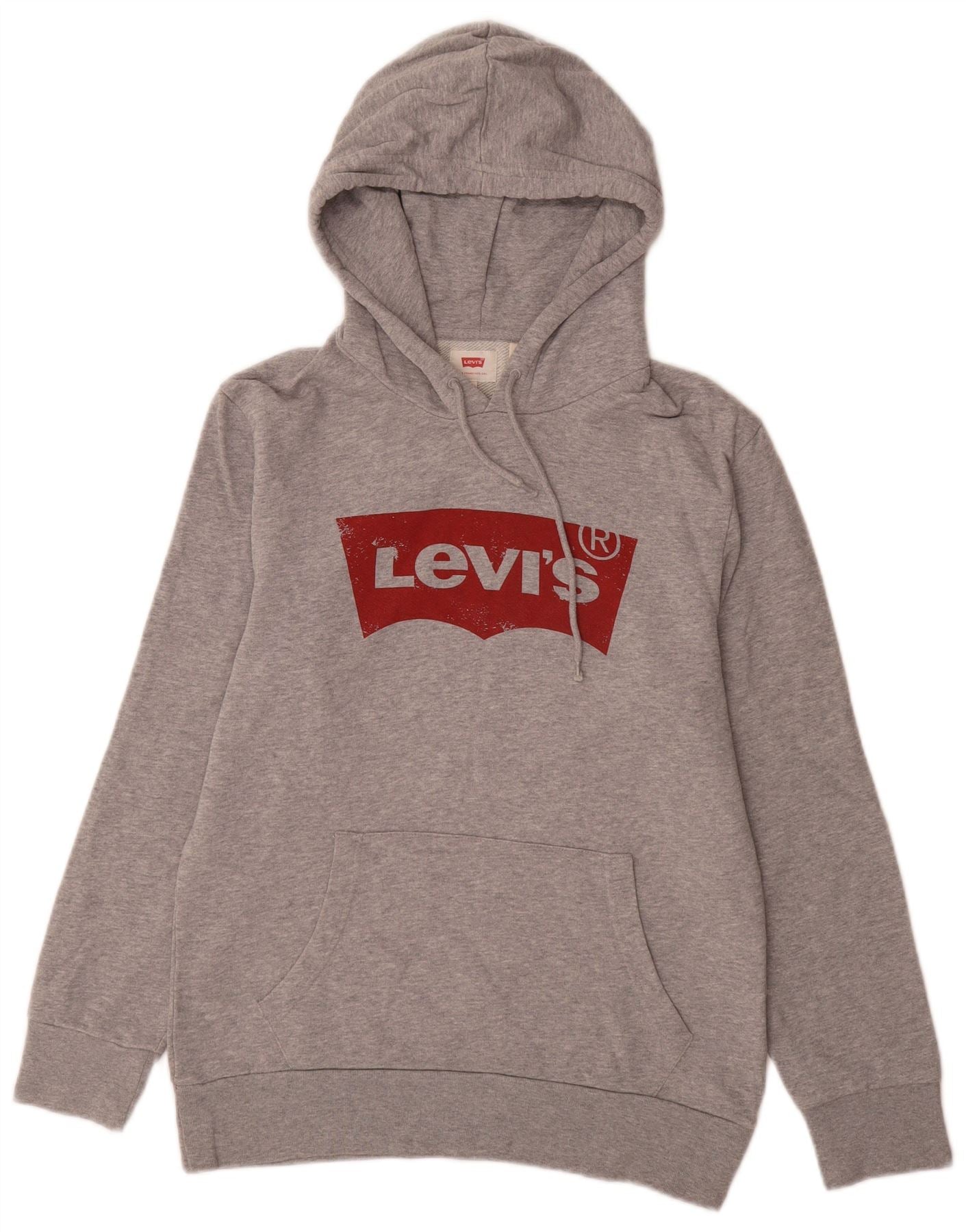 LEVI'S Mens Graphic Hoodie Jumper Small Grey Cotton