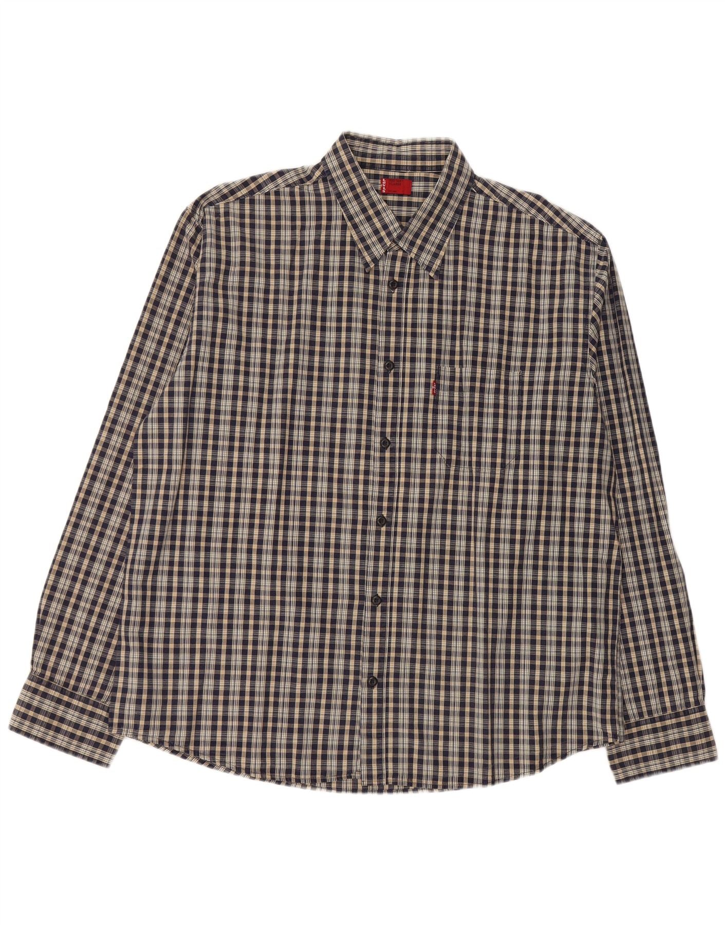 LEVI'S Mens Shirt XL Navy Blue Check Polyester