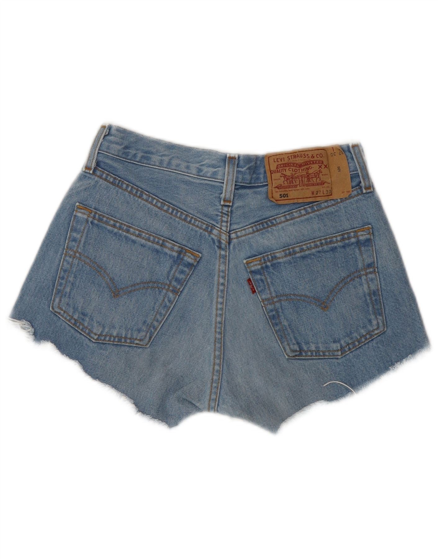 LEVI'S Womens 501 Denim Shorts W27 Small Blue Striped Classic