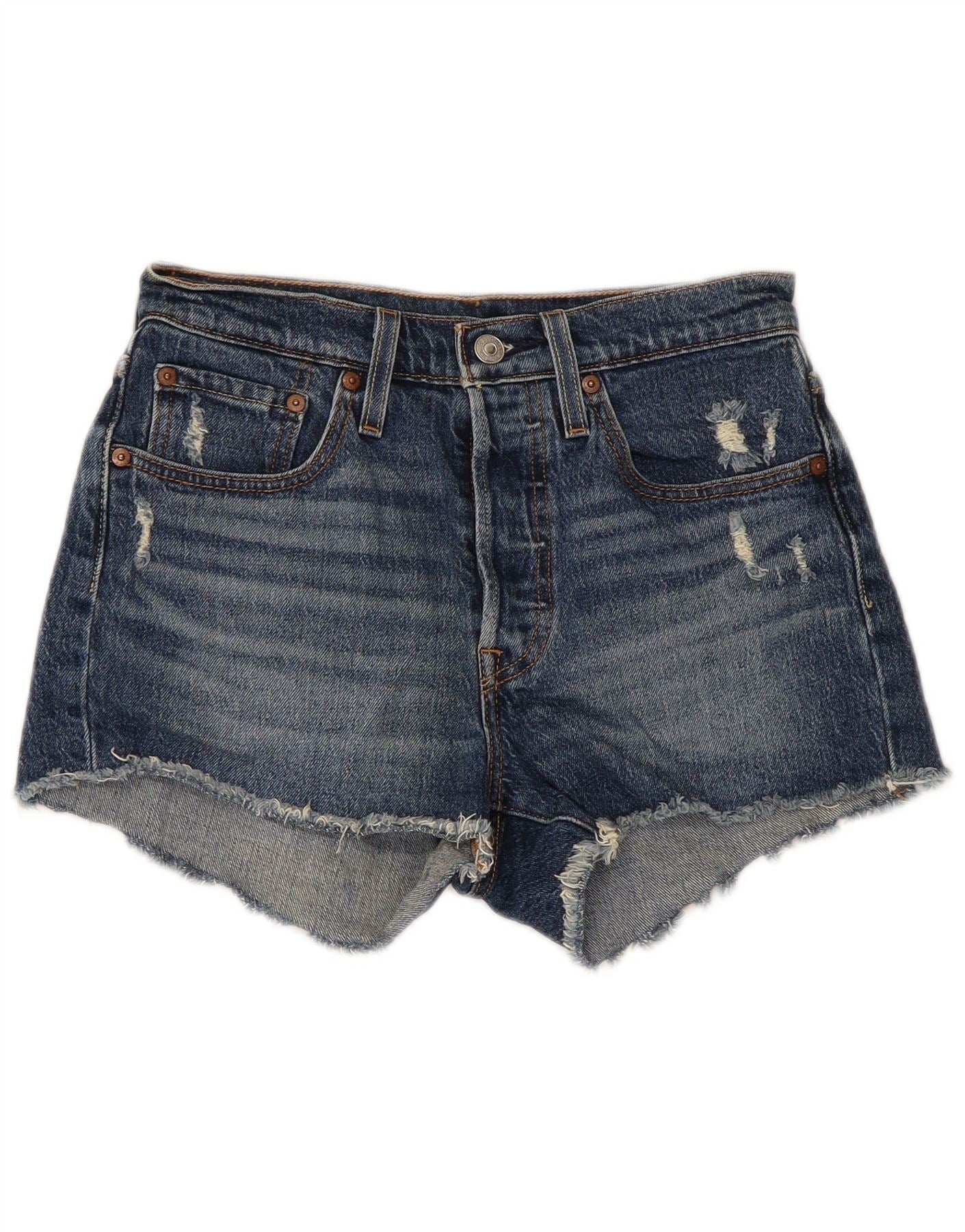 LEVI'S Womens 501 Distressed Denim Shorts W26 Small Blue Cotton