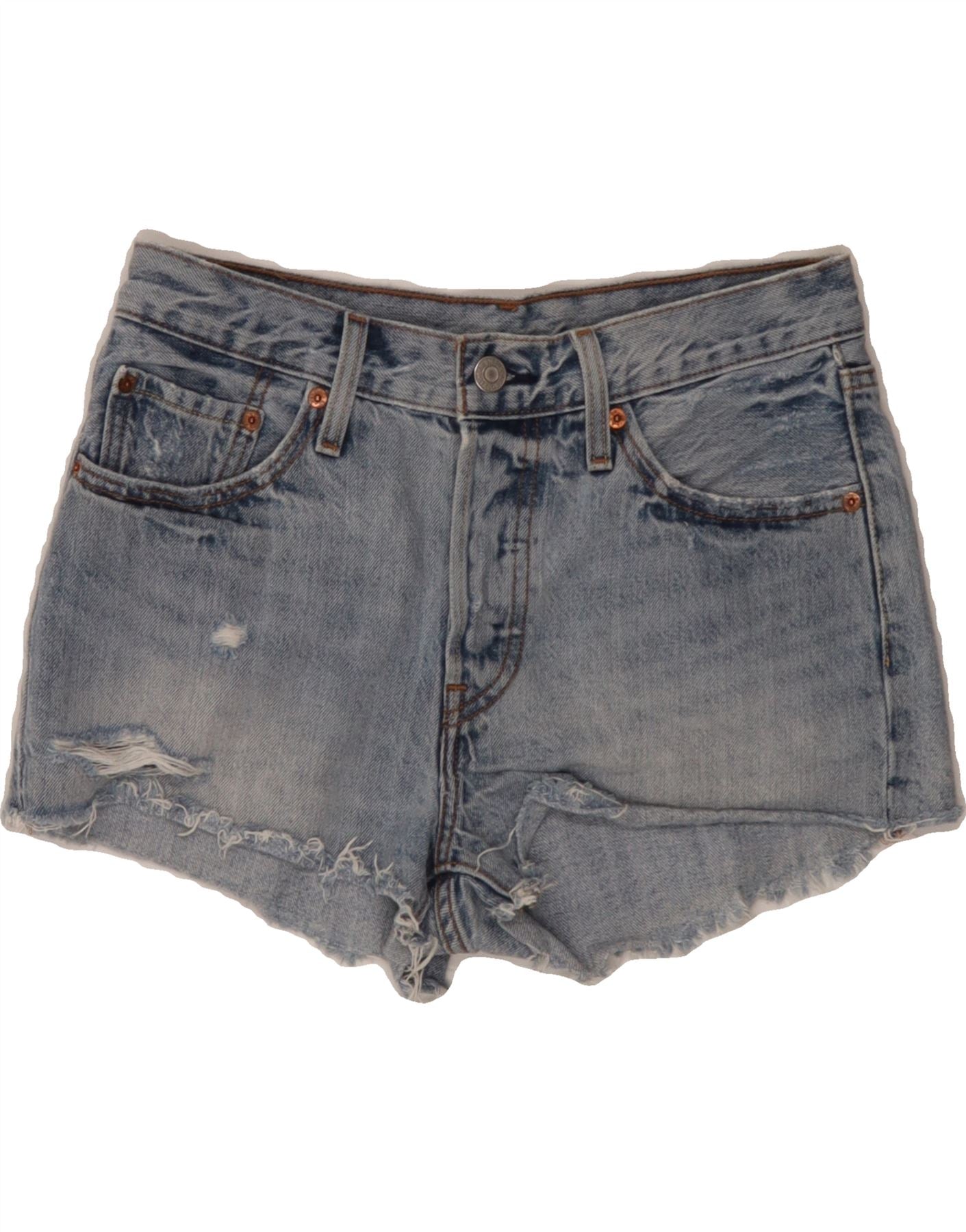 LEVI'S Womens 501 Distressed Denim Shorts W27 Small Blue Cotton