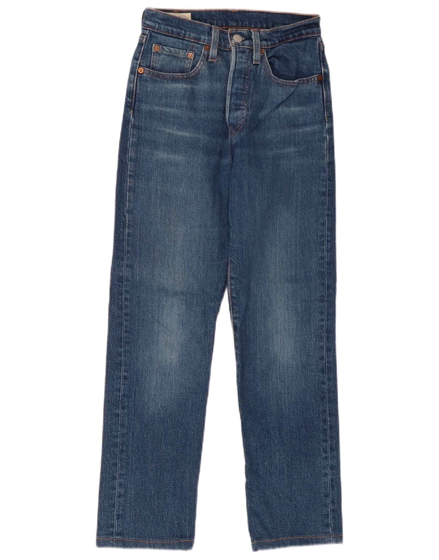 LEVI'S Womens 501 Straight Jeans W24 L30 Blue Cotton