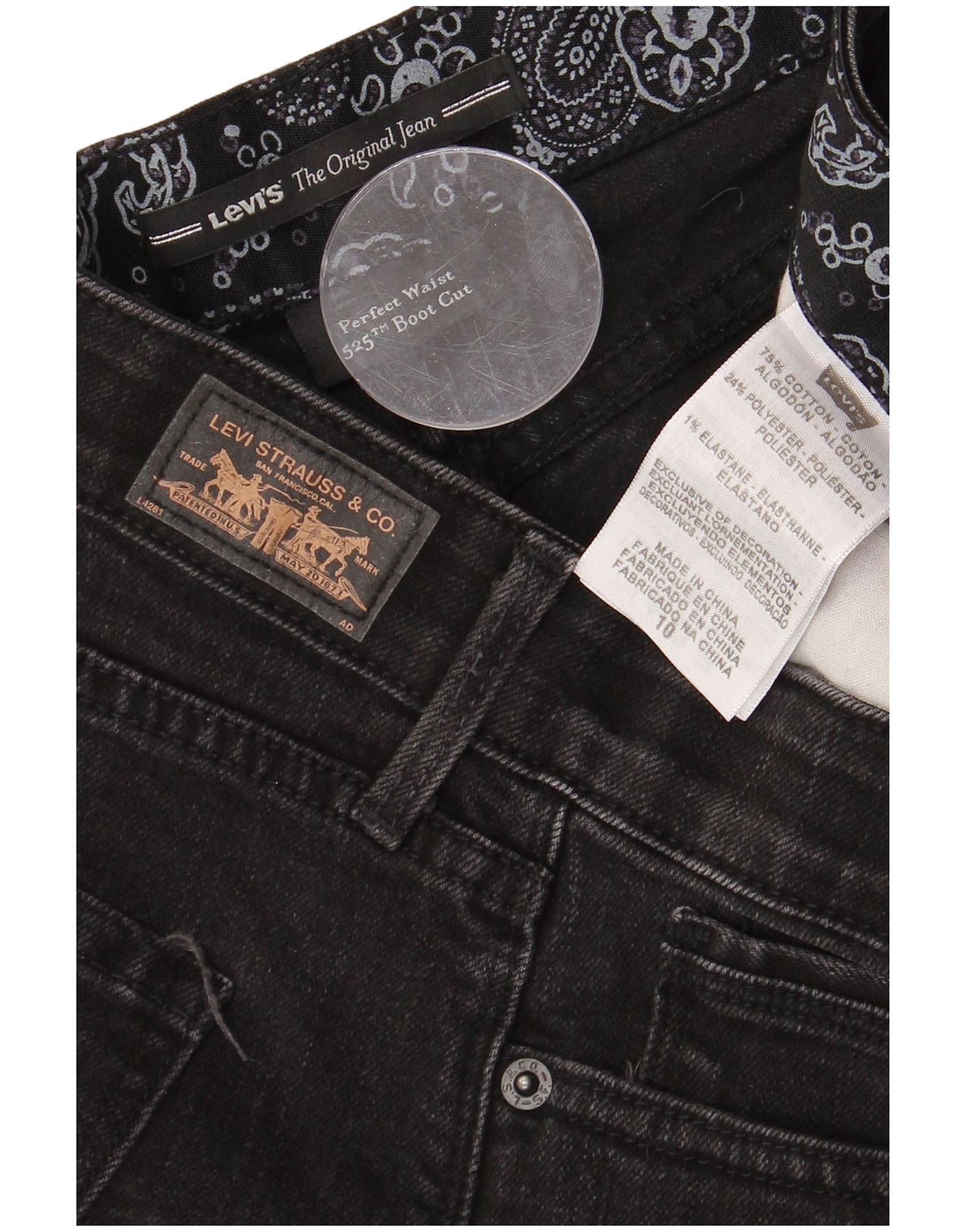 LEVI'S Womens 525 Bootcut Jeans US 10 Large W30 L30 Black