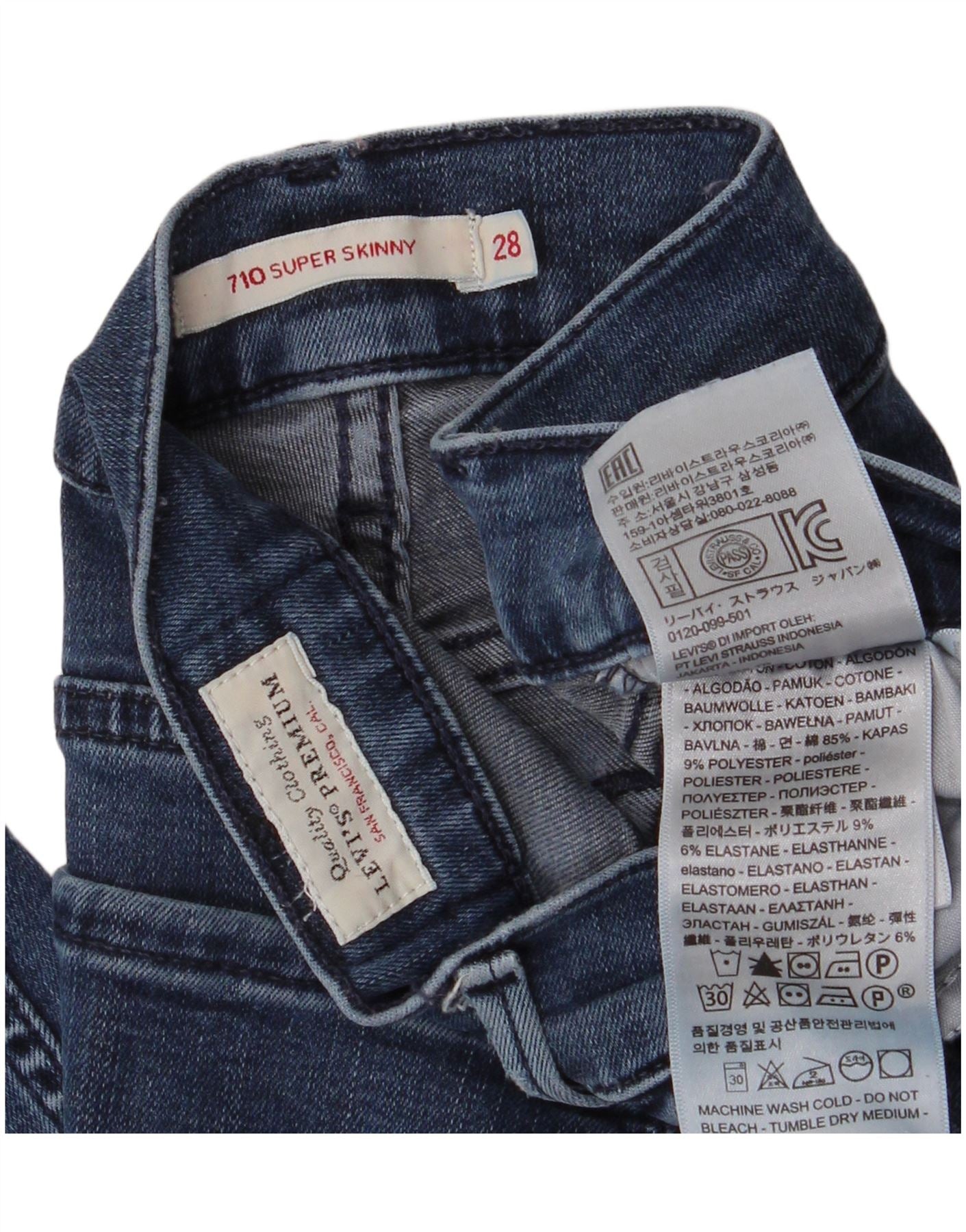 Levi's Womens 710 Super Skinny Jeans W28 L28 Blue Cotton