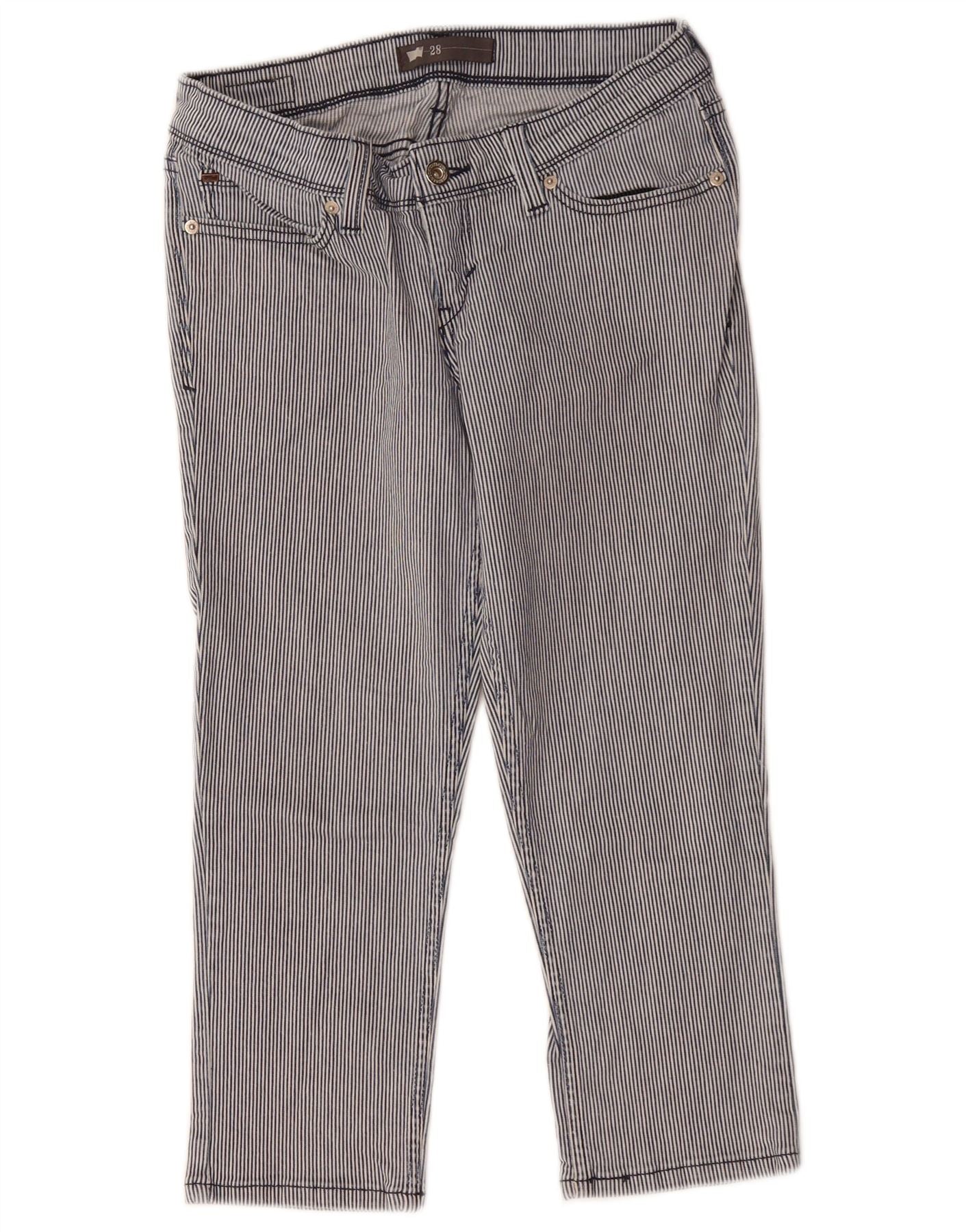 LEVI'S Womens Capri Trousers W28 L21 Navy Blue Pinstripe Cotton
