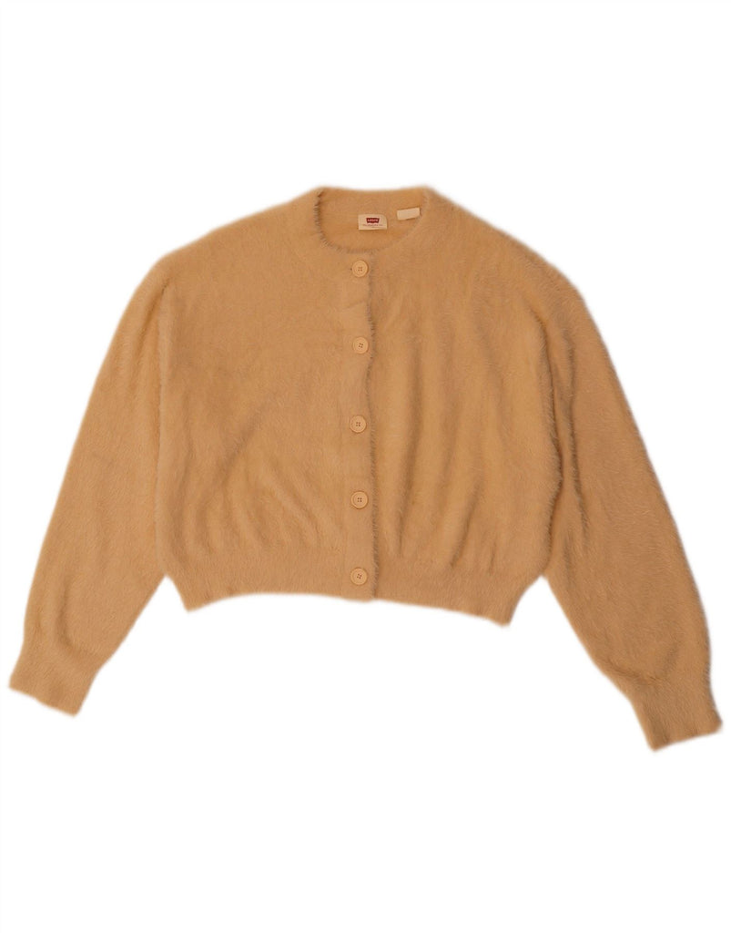 LEVI'S Womens Crop Cardigan Sweater UK 14 Medium Beige Polyamide