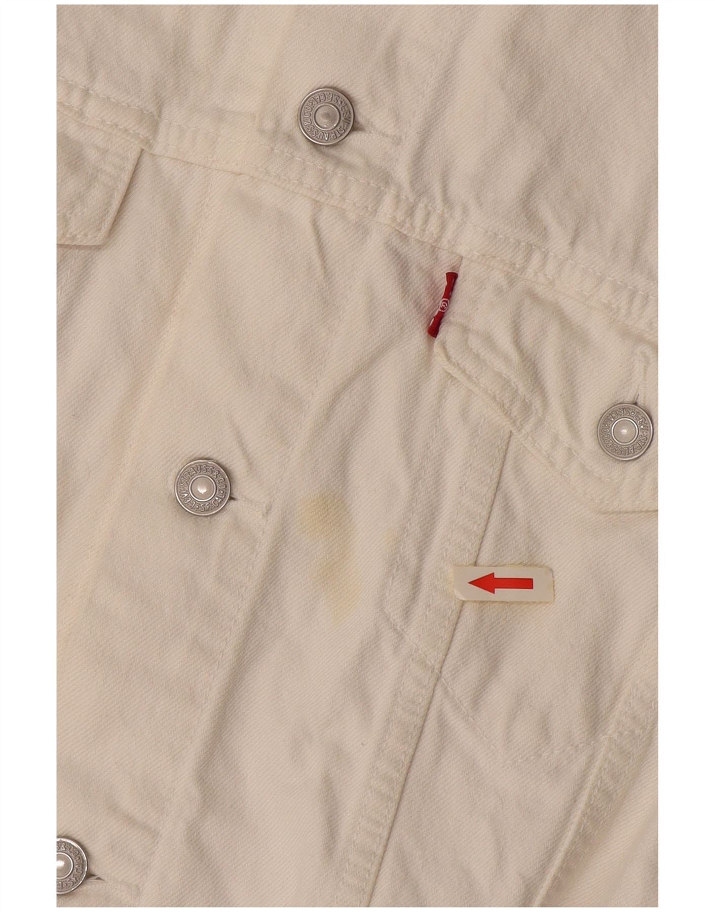 LEVI'S Womens Crop Denim Gilet UK 16 Large White Cotton