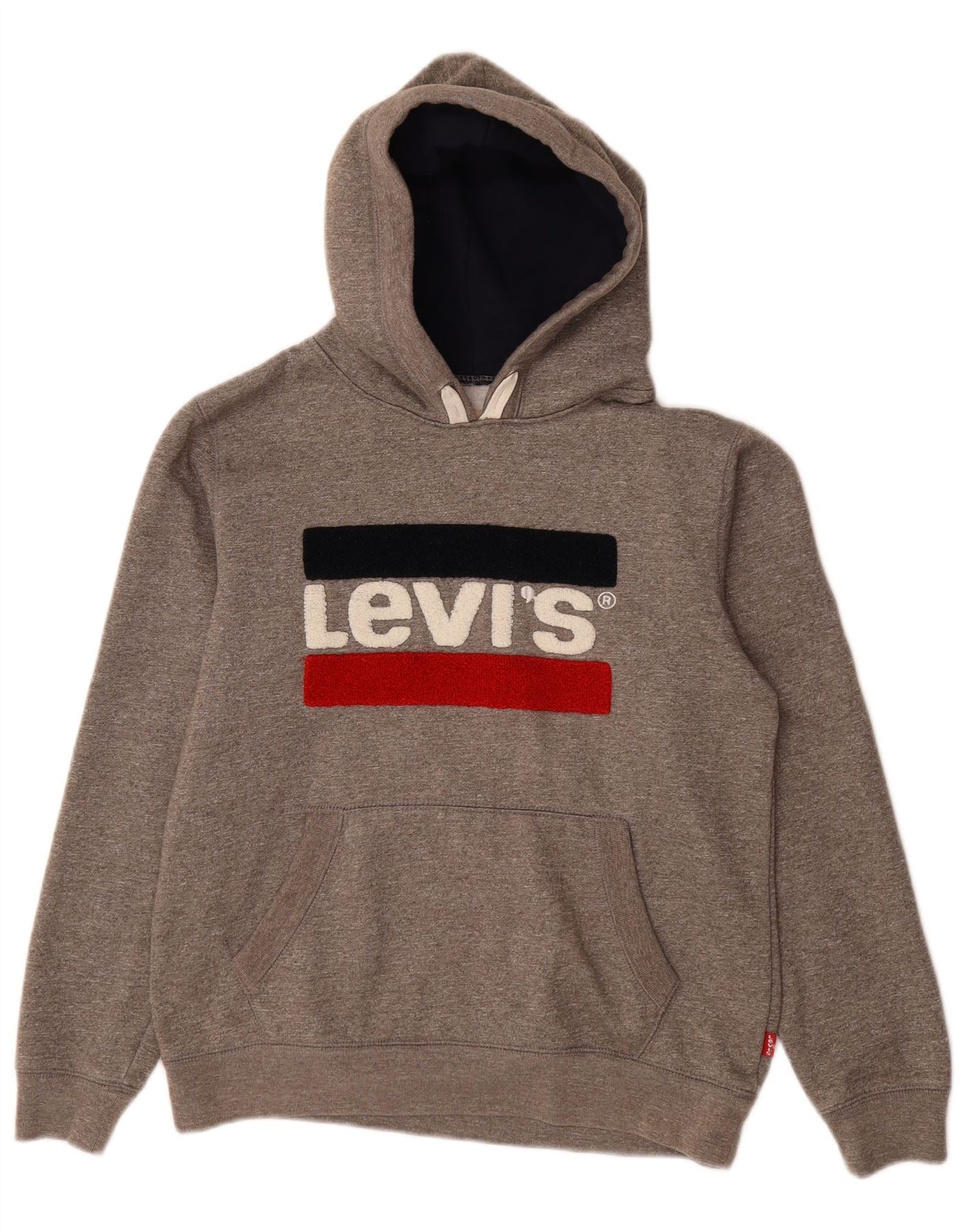 LEVI'S Womens Graphic Hoodie Jumper UK 16 Large Grey Flecked Cotton