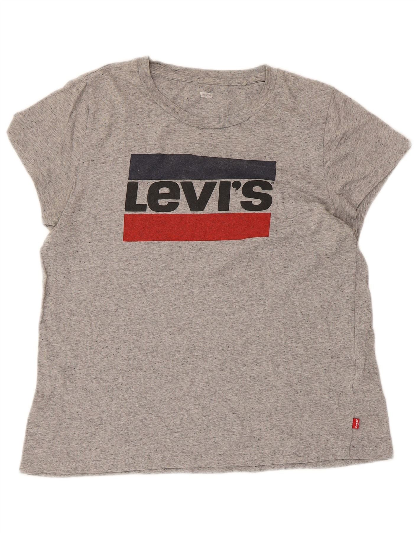 LEVI'S Womens Graphic T-Shirt Top UK 14 Large Grey Flecked Cotton