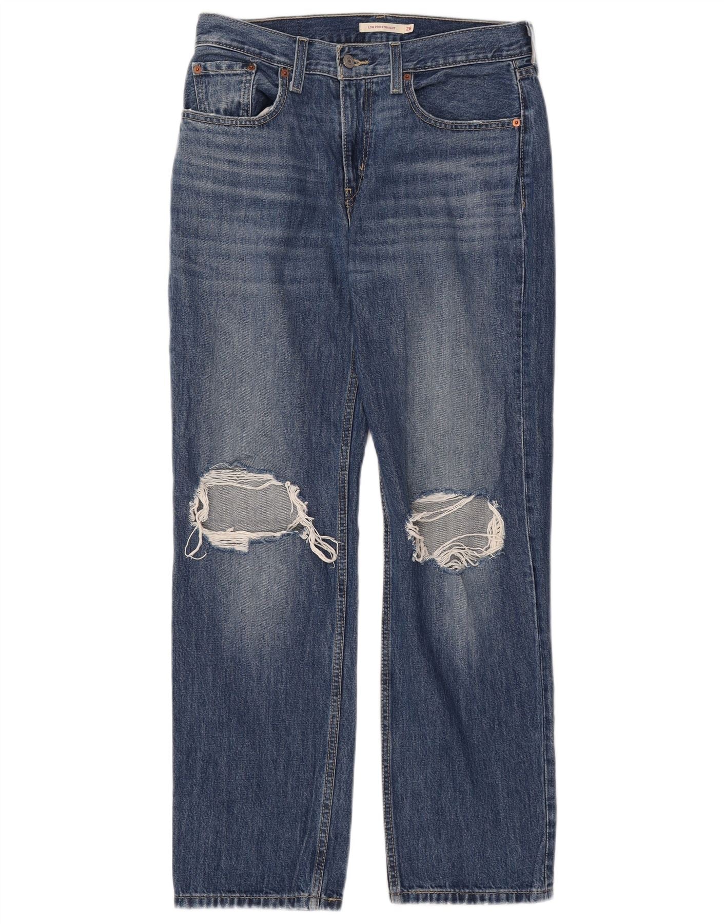LEVI'S Womens Low Pro Distressed Straight Jeans W28 L31 Blue Cotton