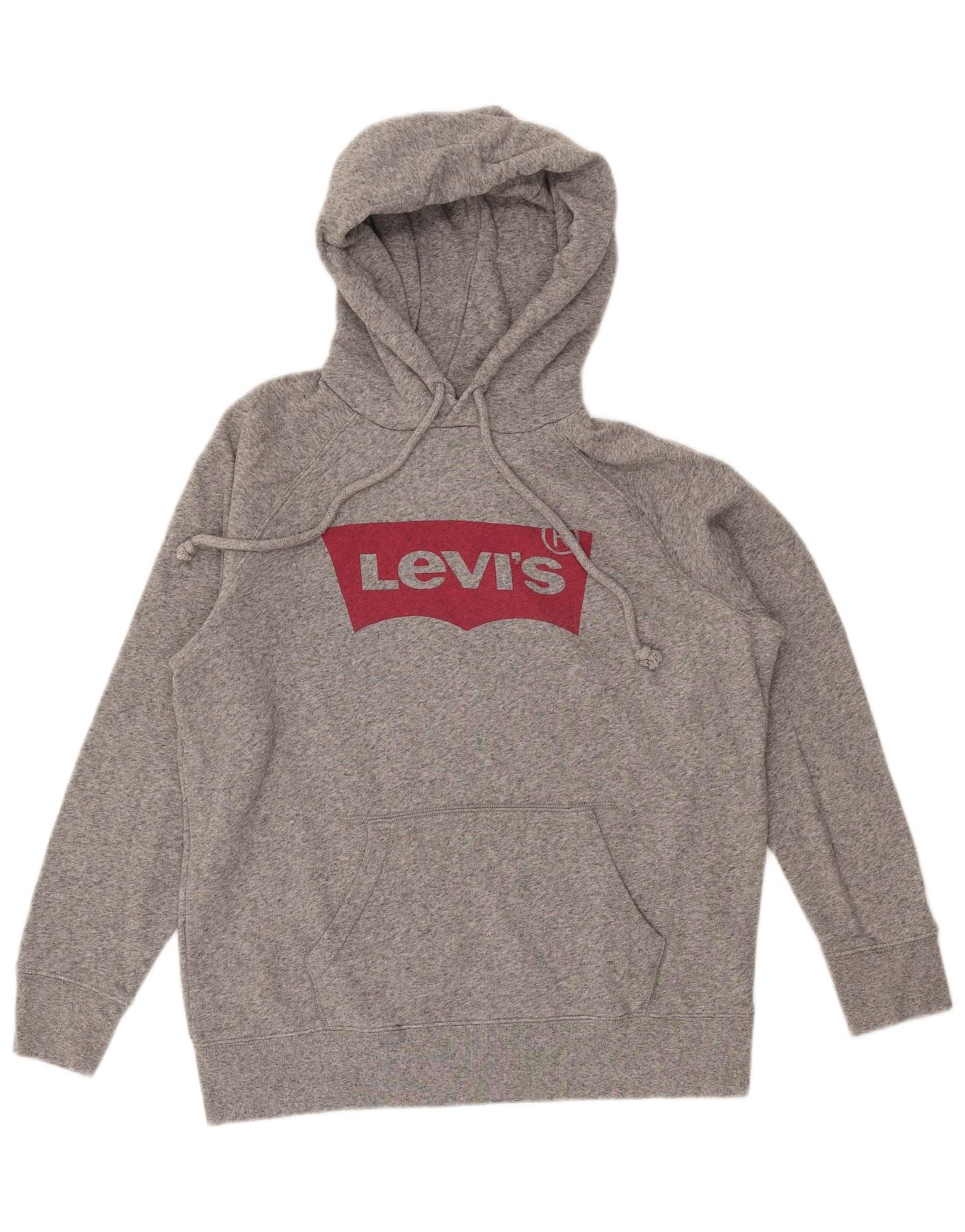 LEVI'S Womens Oversized Graphic Hoodie Jumper UK 10 Small Grey Flecked