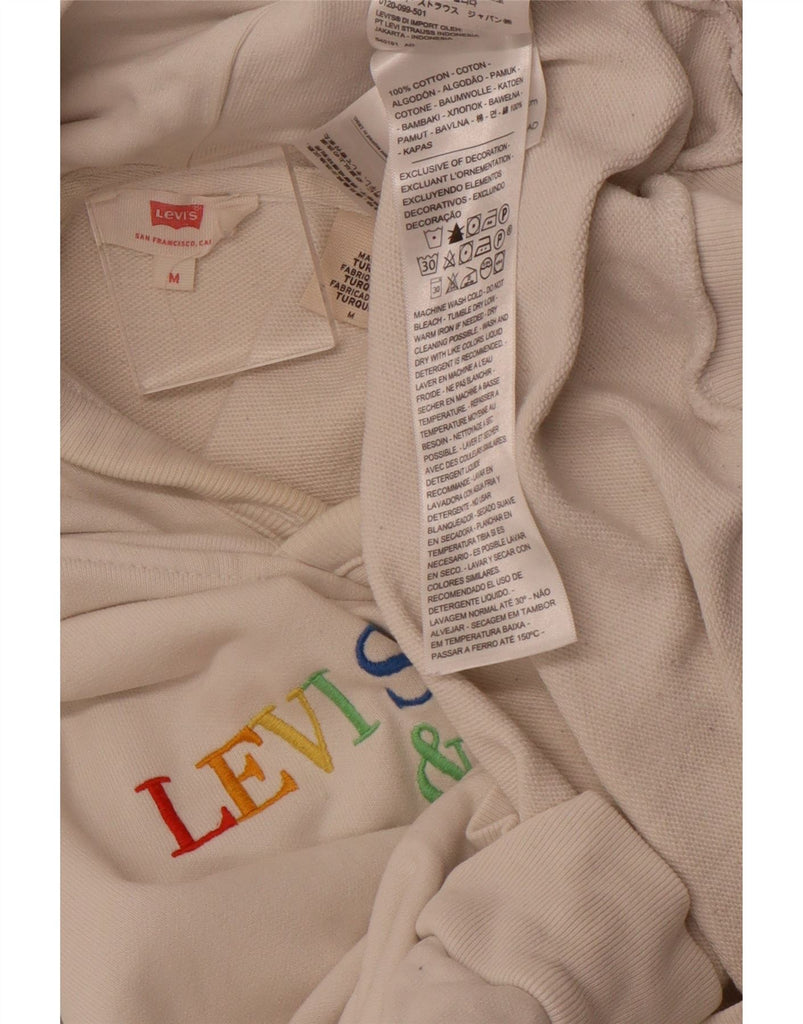 LEVI'S Womens Oversized Graphic Hoodie Jumper UK 14 Medium Off White