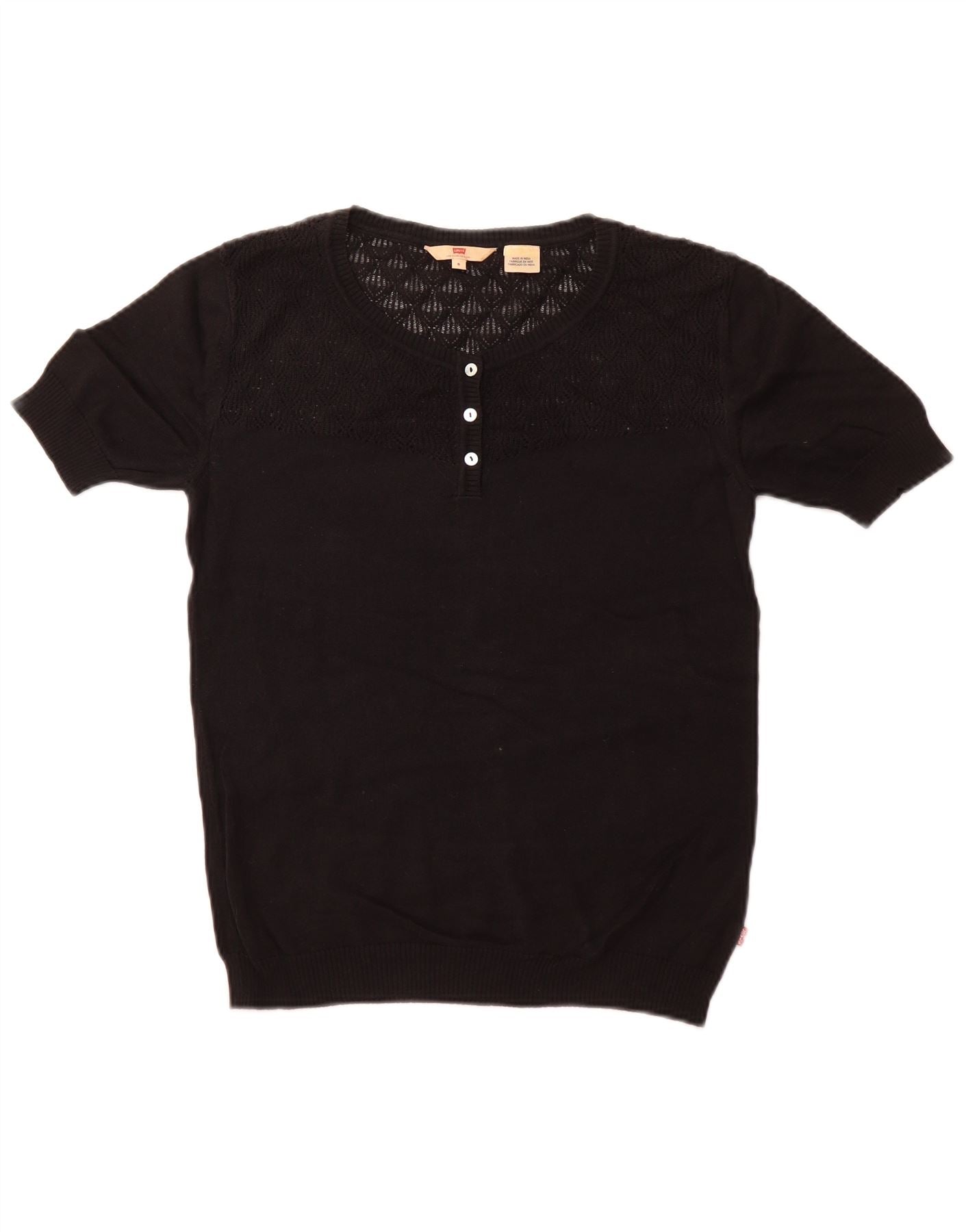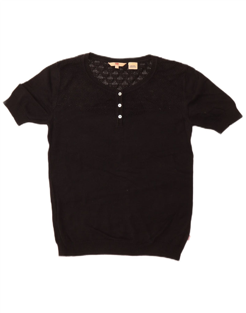 LEVI'S Womens Short Sleeve Boat Neck Jumper Sweater UK 10 Small Black