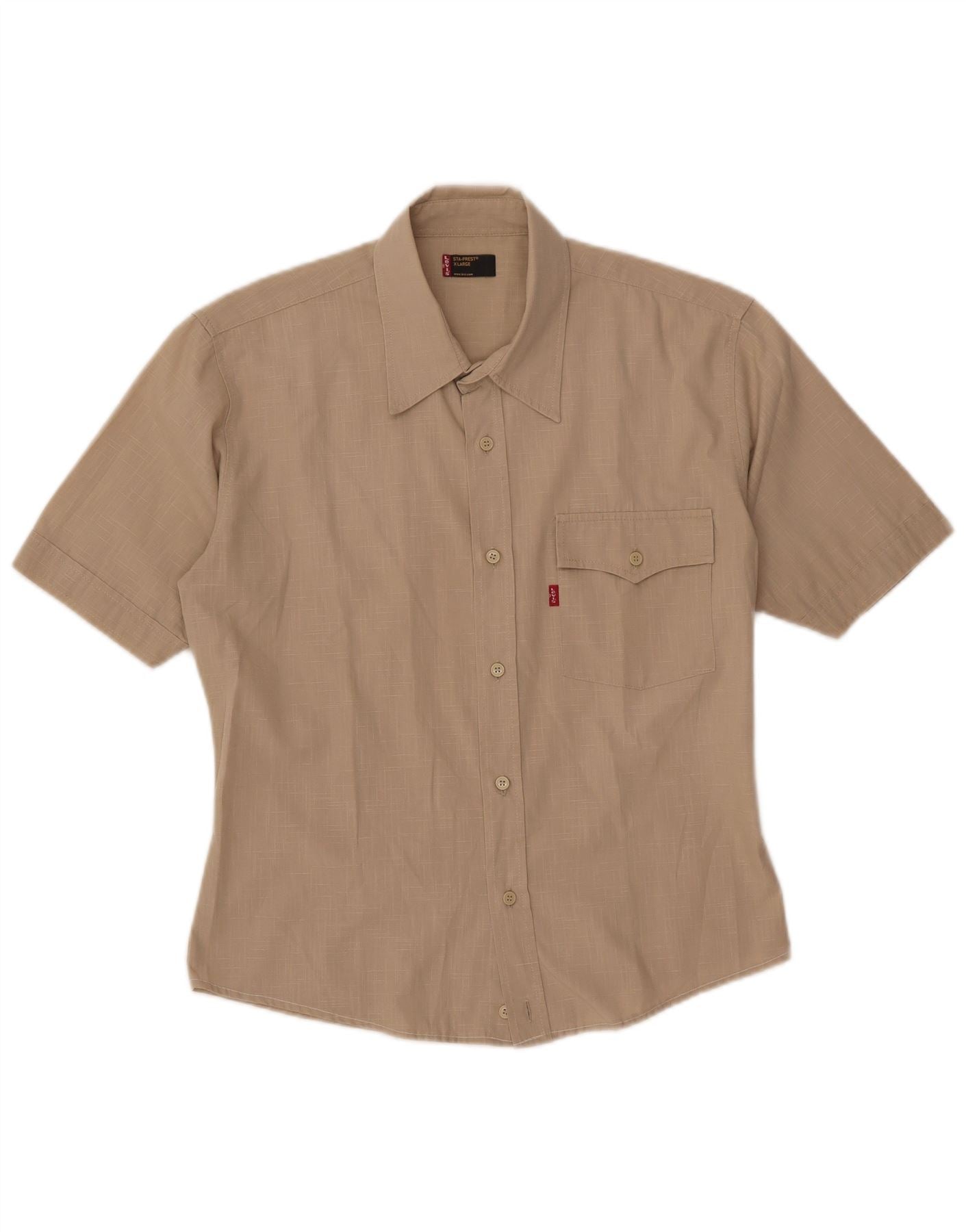 Levi's Womens Sta-Prest Short Sleeve Shirt UK 18 XL Beige Check