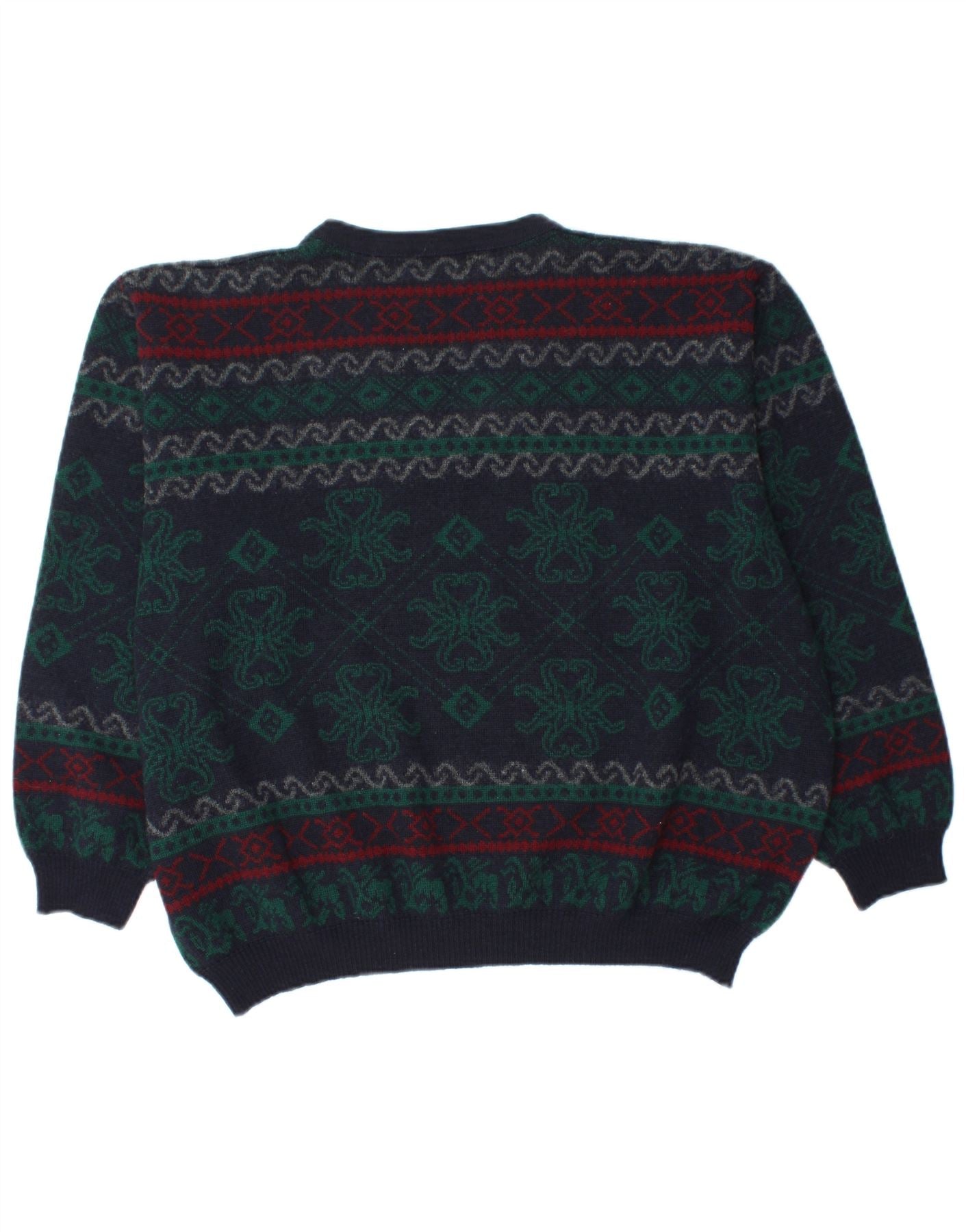 LEWINGER Womens V-Neck Jumper Sweater UK 20 2XL Navy Blue Fair Isle