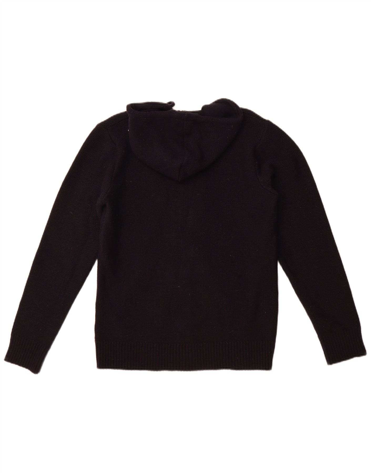 Libero Milano Womens Hooded Cardigan Sweater UK 14 Medium Black Wool