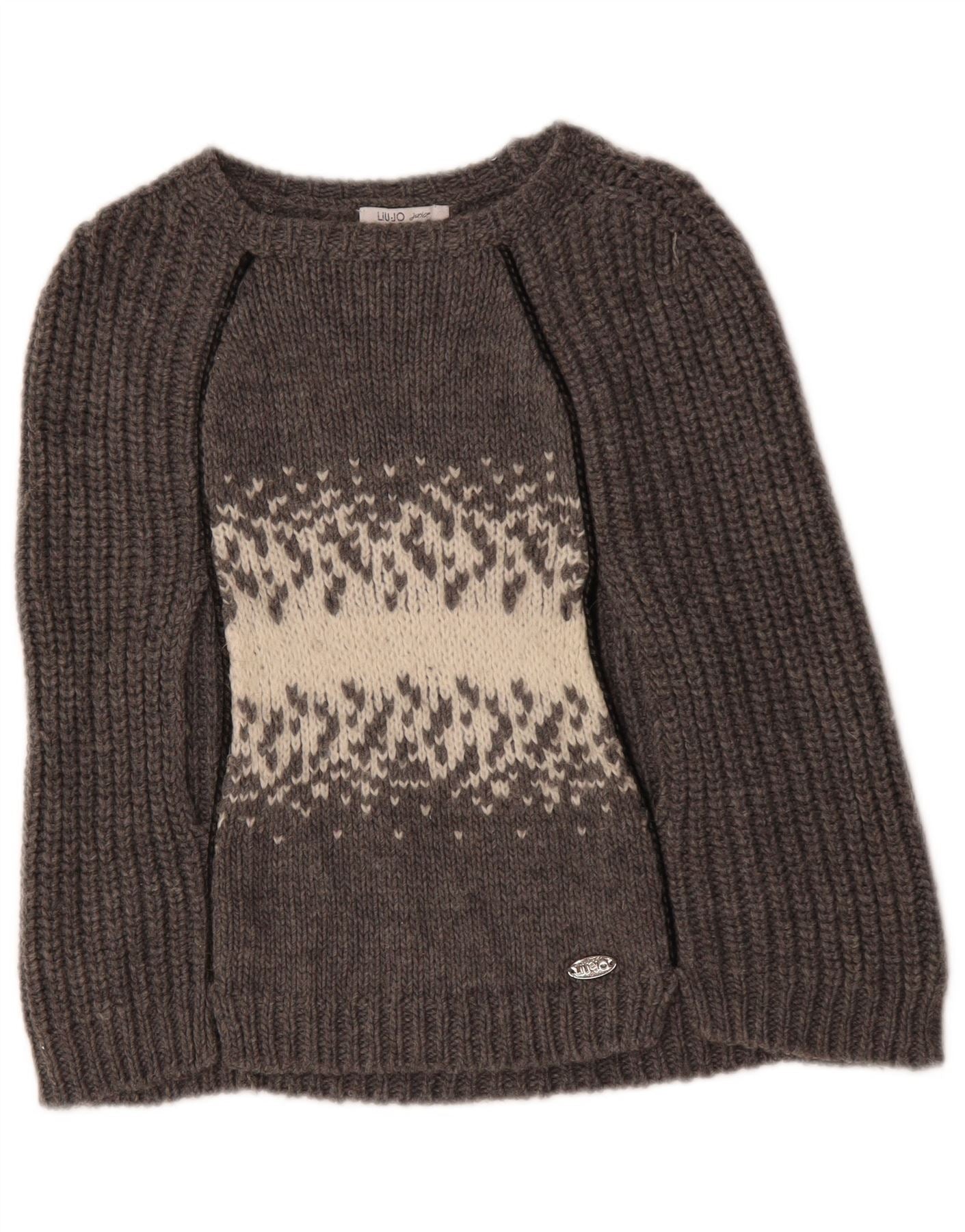 LIU JO Girls Poncho Jumper 15-16 Years Medium Grey Fair Isle Acrylic