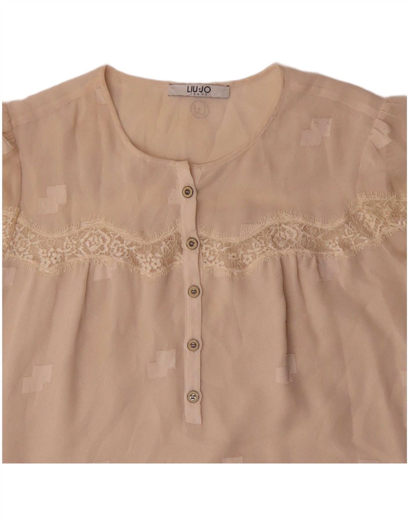LIU JO Womens 3/4 Sleeve Blouse Top UK 16 Large Beige Geometric