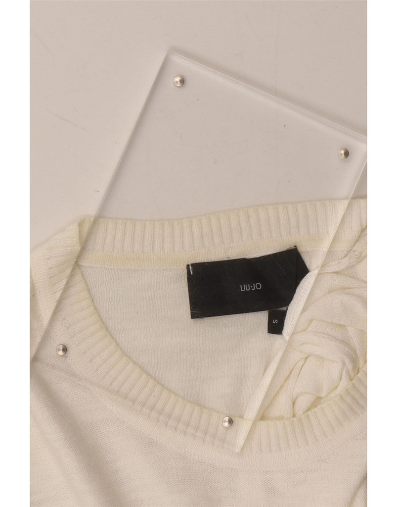 LIU JO Womens Short Sleeve Crew Neck Jumper Sweater UK 10 Small White