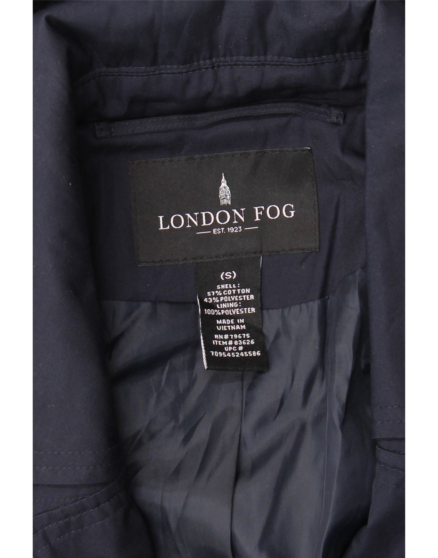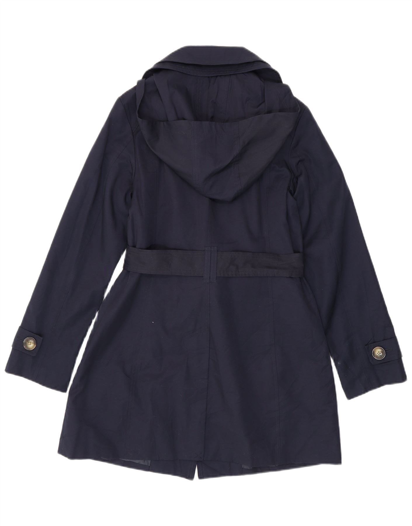 LONDON FOG Womens Hooded Trench Coat UK 10 Small Navy Blue Cotton