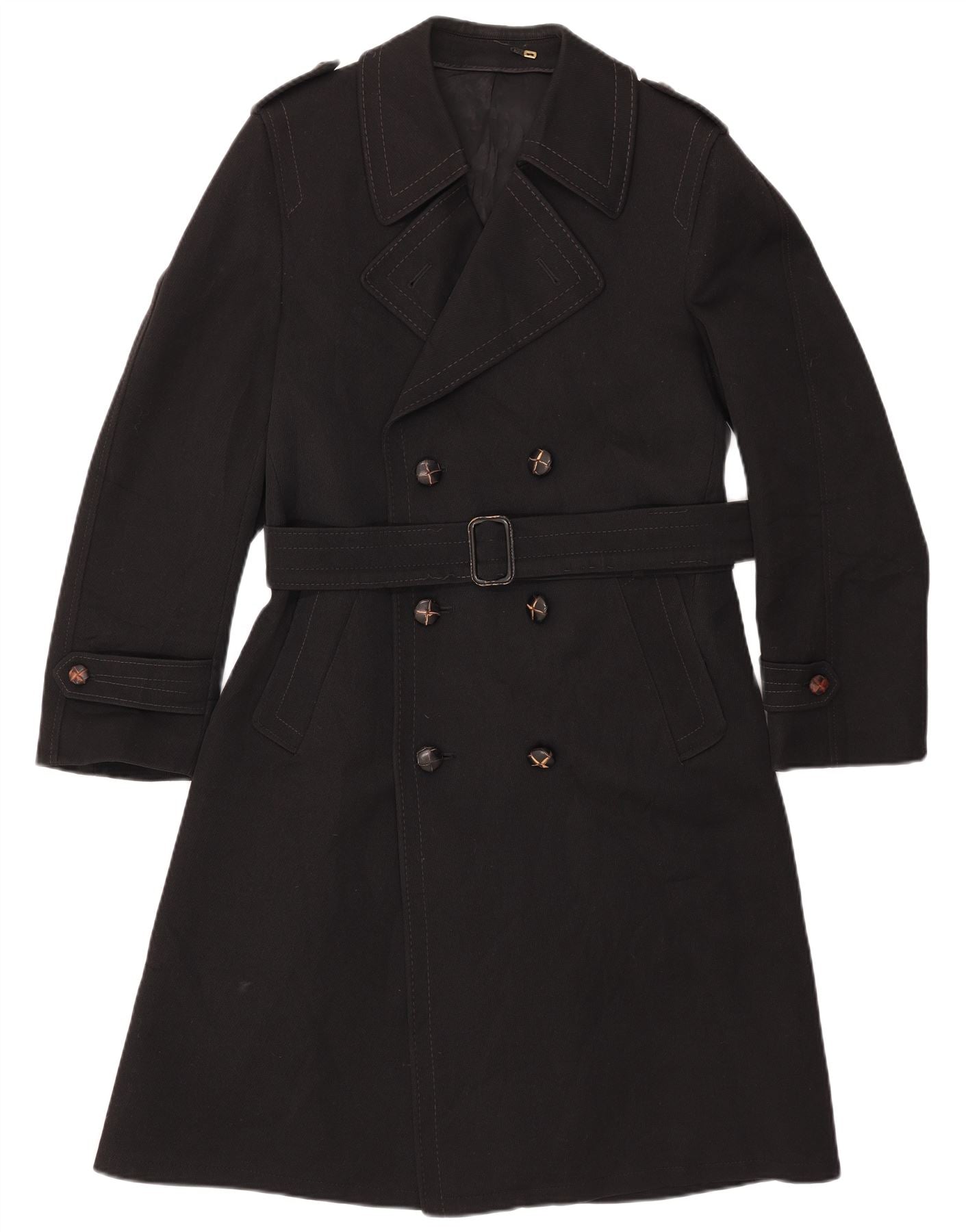 LORD Mens Trench Coat IT 48 Medium Black Wool