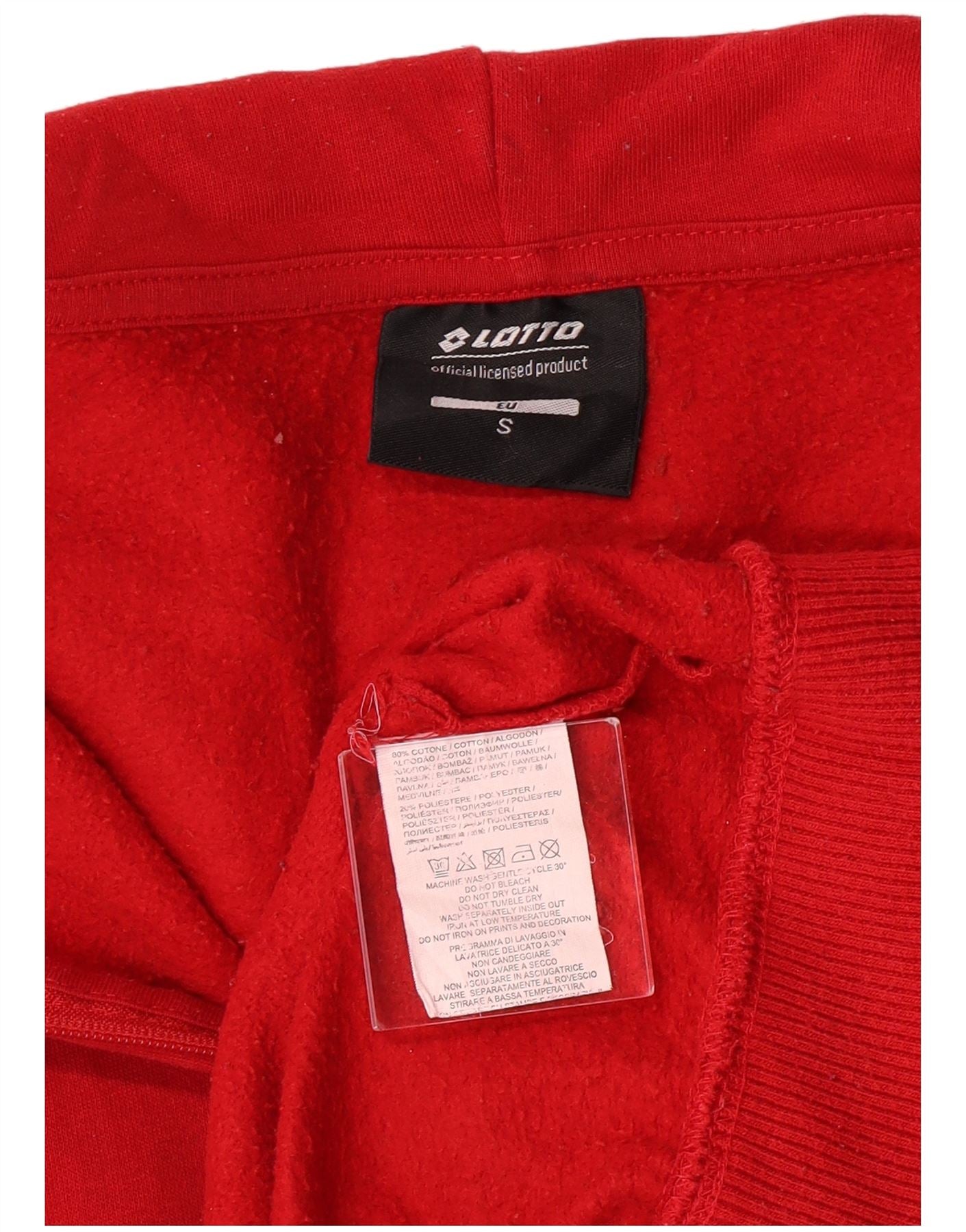 - AI Description: This Lotto men's zip hoodie sweater is crafted from a comfortable knit fabric blend of 80% cotton and 20% polyester. It features a classic round neckline and long sleeves. The hoodie has a full zip closure and a regular fit for everyday wear. A prominent logo accent adds a sporty touch. This official licensed product is ideal for soccer enthusiasts.