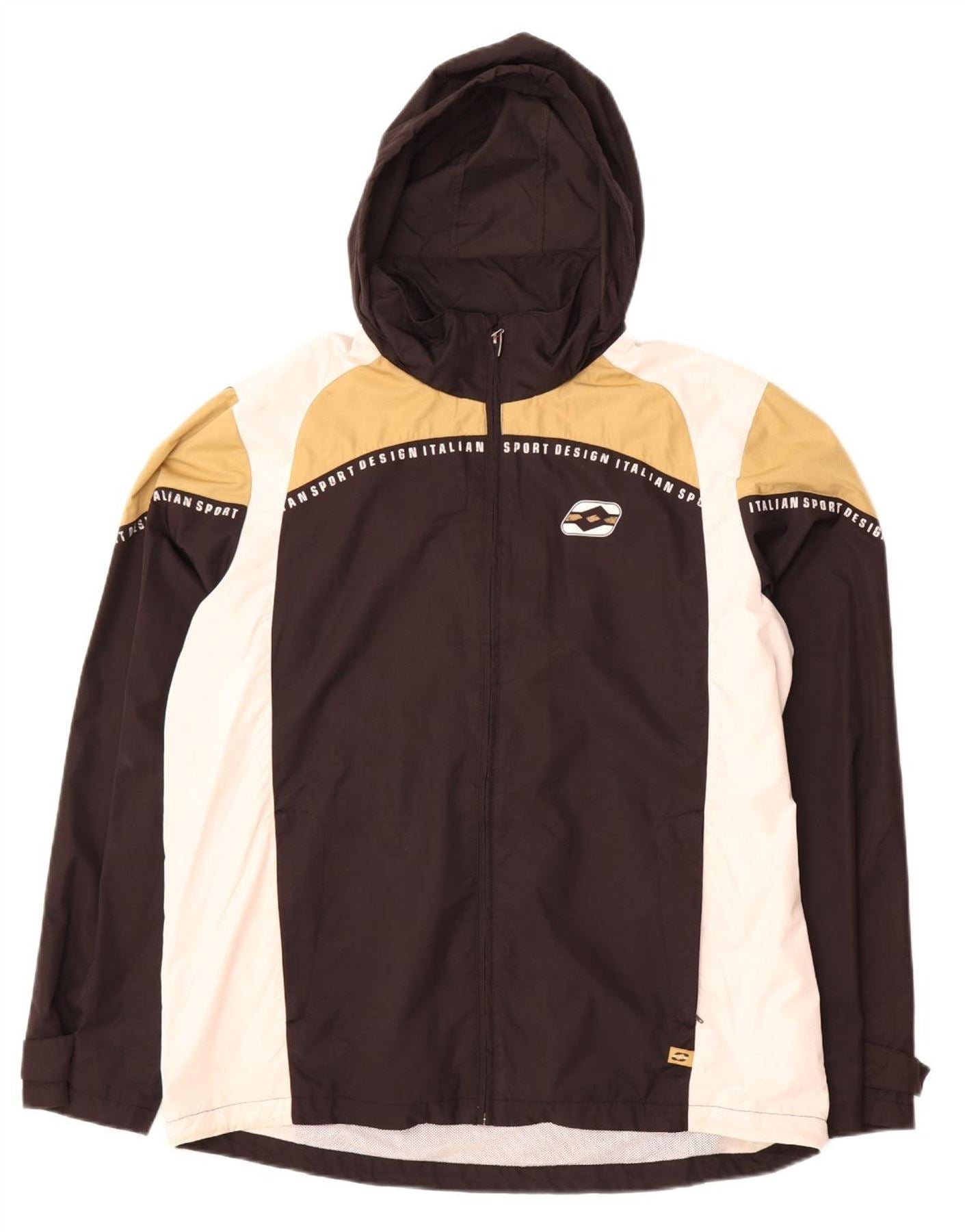 LOTTO Mens Hooded Windbreaker Jacket UK 44/46 2XL Black Colourblock