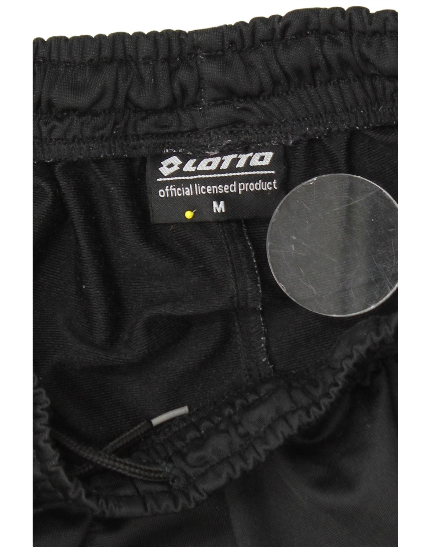 - AI Description: This Lotto mens tracksuit trousers joggers are crafted from a smooth black knit fabric. They feature a comfortable elastic waist with a pull on drawstring closure. The regular fit ensures ease of movement. Cuffed ankles provide a neat finish. White side stripes run down each leg, complementing the Lotto logo accent. Practical pockets are included for convenience. These joggers are ideal for football training or casual wear.