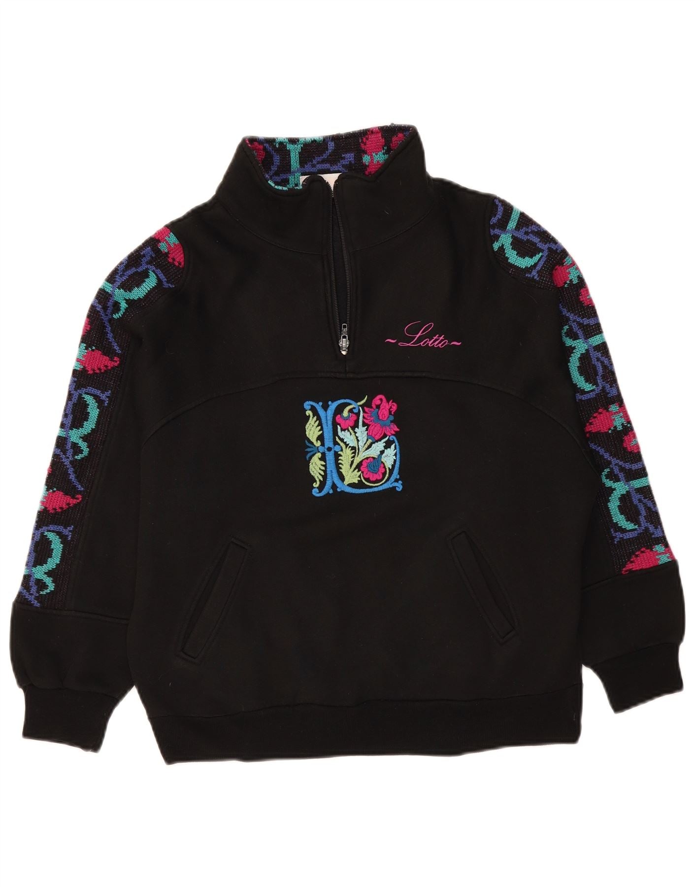 LOTTO Womens Oversized Graphic Sweatshirt Jumper UK 10 Small Black Floral
