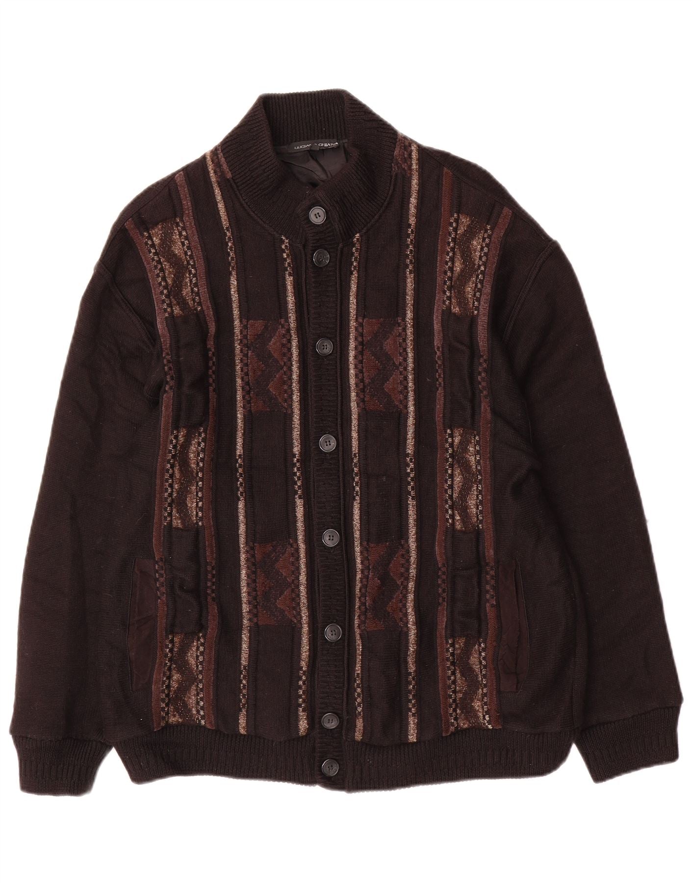 LUCIANO CHIARI Mens Cardigan Sweater IT 52 Large Black Geometric Wool