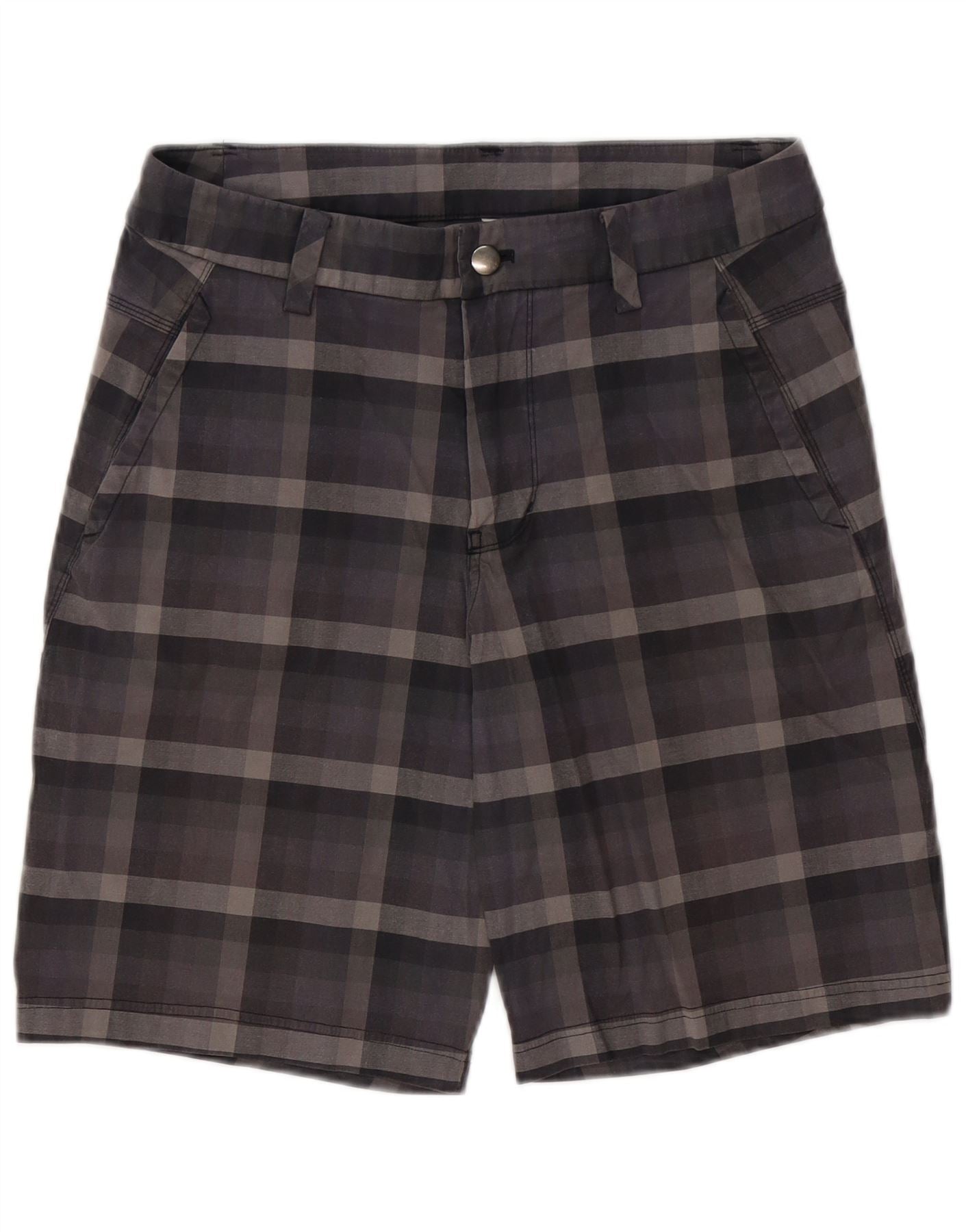 - AI Description: This Lululemon mens shorts are crafted from a comfortable grey blended fabric with stretch. A classic plaid pattern in varying grey tones adds visual depth. They feature a regular fit and a secure button closure. Practical pockets enhance functionality. Designed for comfort, these shorts offer versatile everyday wear.