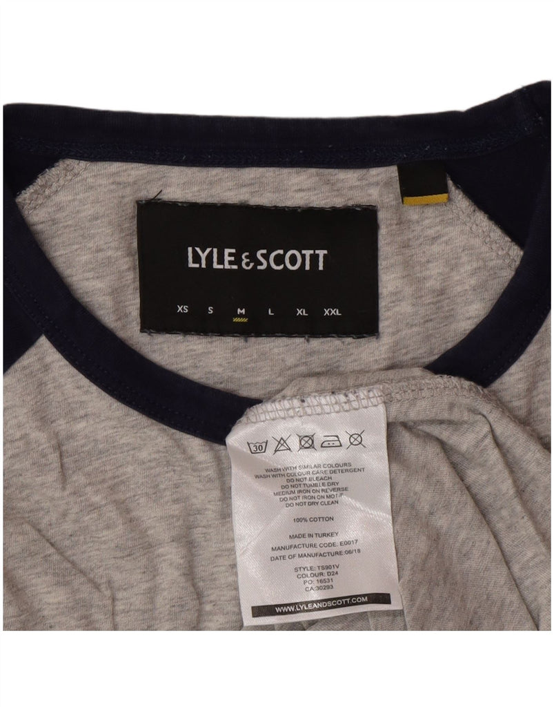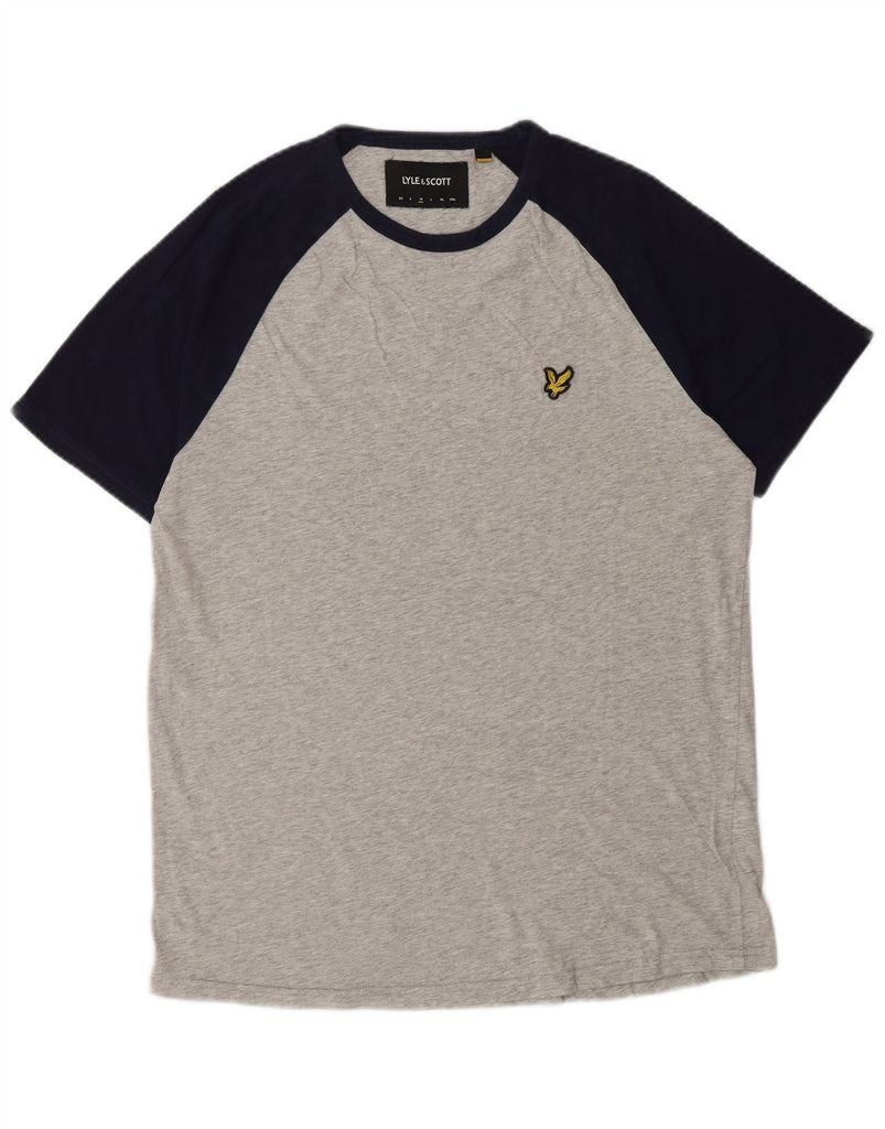 LYLE & SCOTT Mens T-Shirt Top Medium Grey Colourblock Cotton