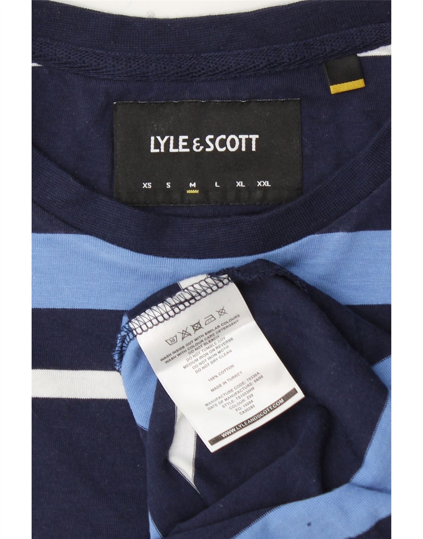 LYLE & SCOTT Mens T-Shirt Top Medium Navy Blue Striped Cotton