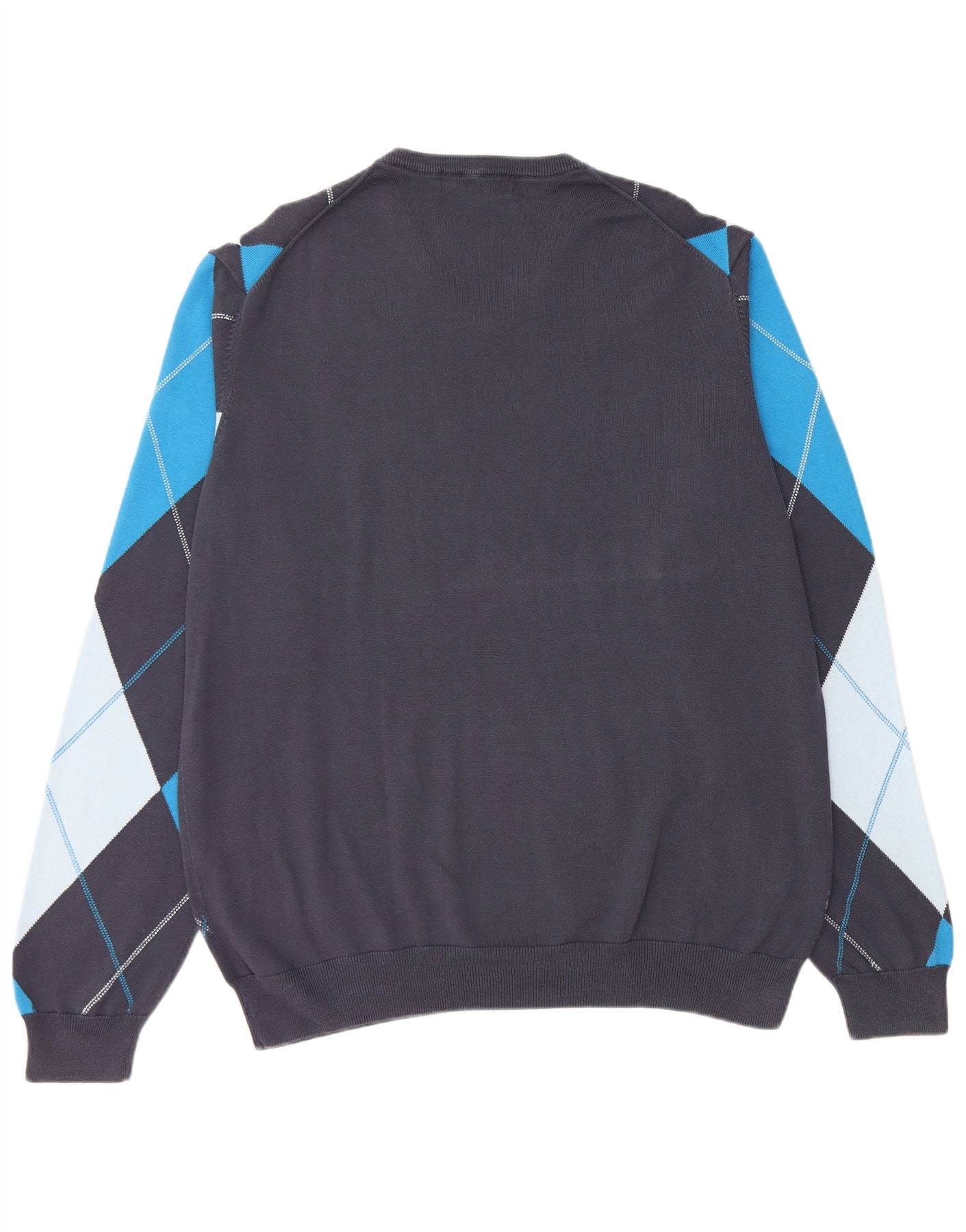 LYLE & SCOTT Mens V-Neck Jumper Sweater 2XL Navy Blue Argyle/Diamond