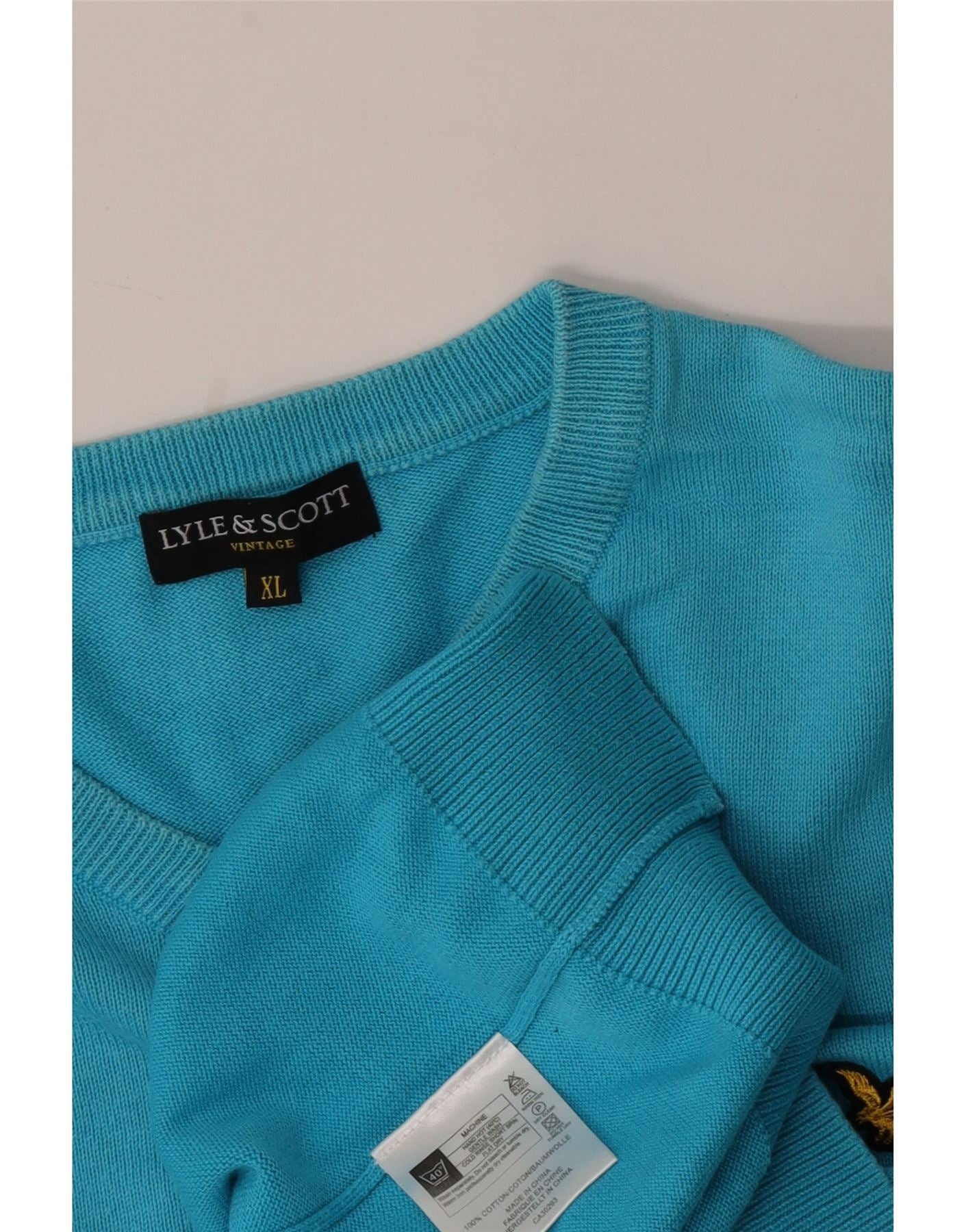 - AI Description: This Lyle & Scott mens V-Neck Jumper Sweater is crafted from 100 percent cotton knit, offering a soft and comfortable feel. Its vibrant turquoise hue adds a fresh pop of colour. The classic V-neckline provides a timeless silhouette. Long sleeves finish with comfortable ribbed cuffs. The hem is also ribbed for a neat finish. A subtle embroidered logo adorns the chest, signifying brand quality. This pullover style ensures a regular, comfortable fit.