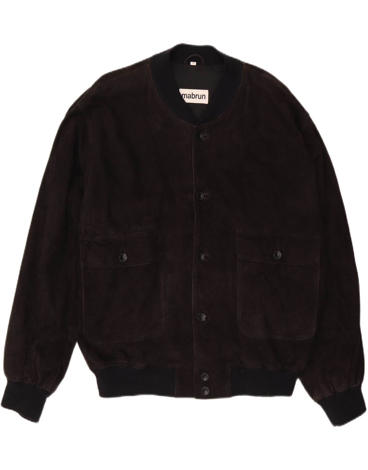 MABRUN Mens Suede Bomber Jacket IT 56 3XL Black Leather