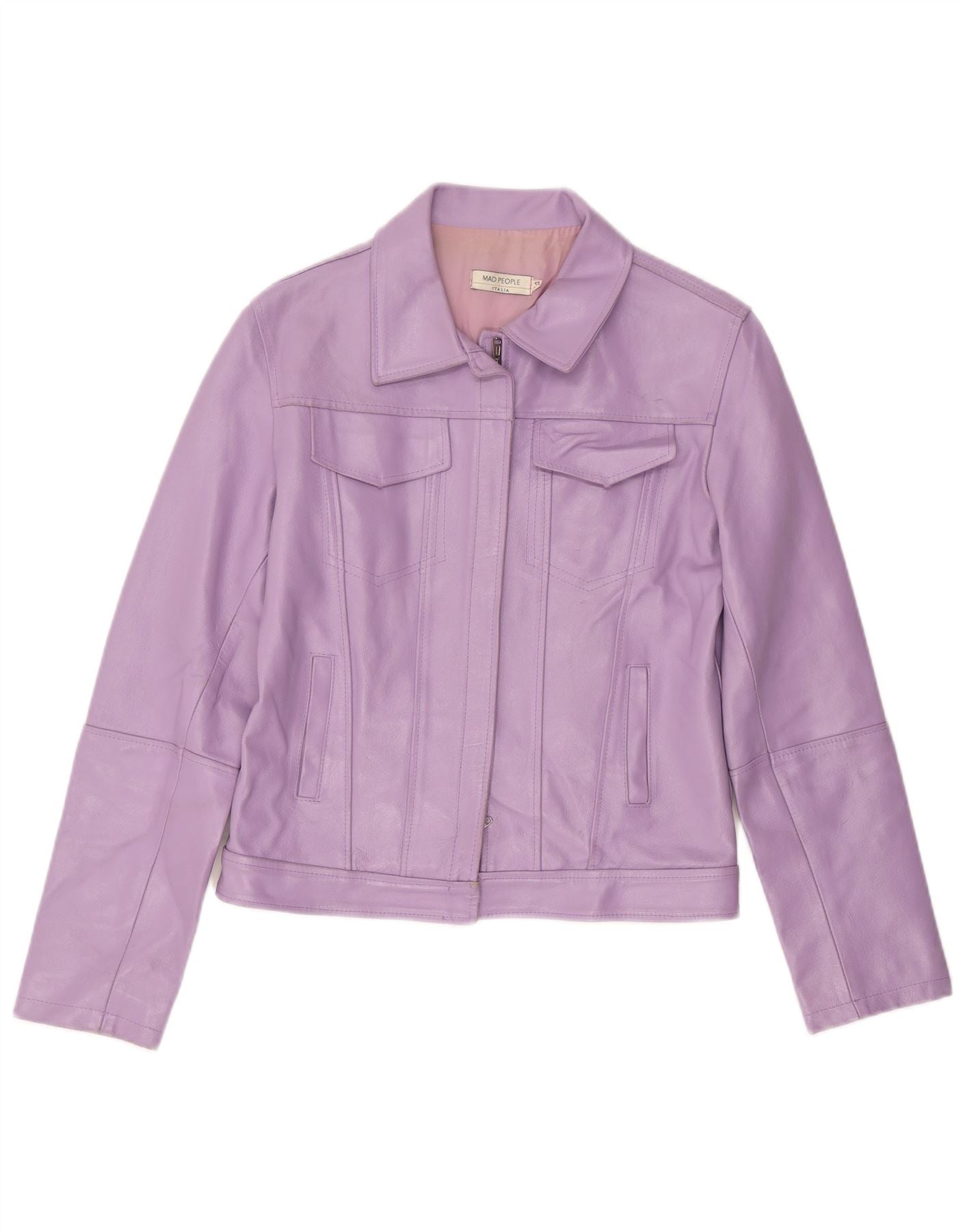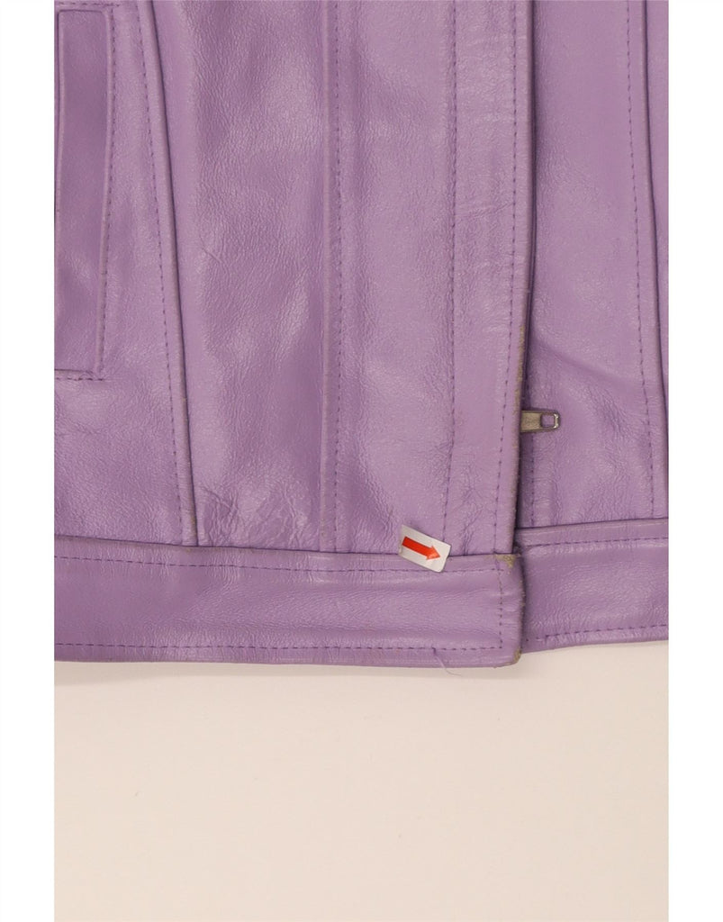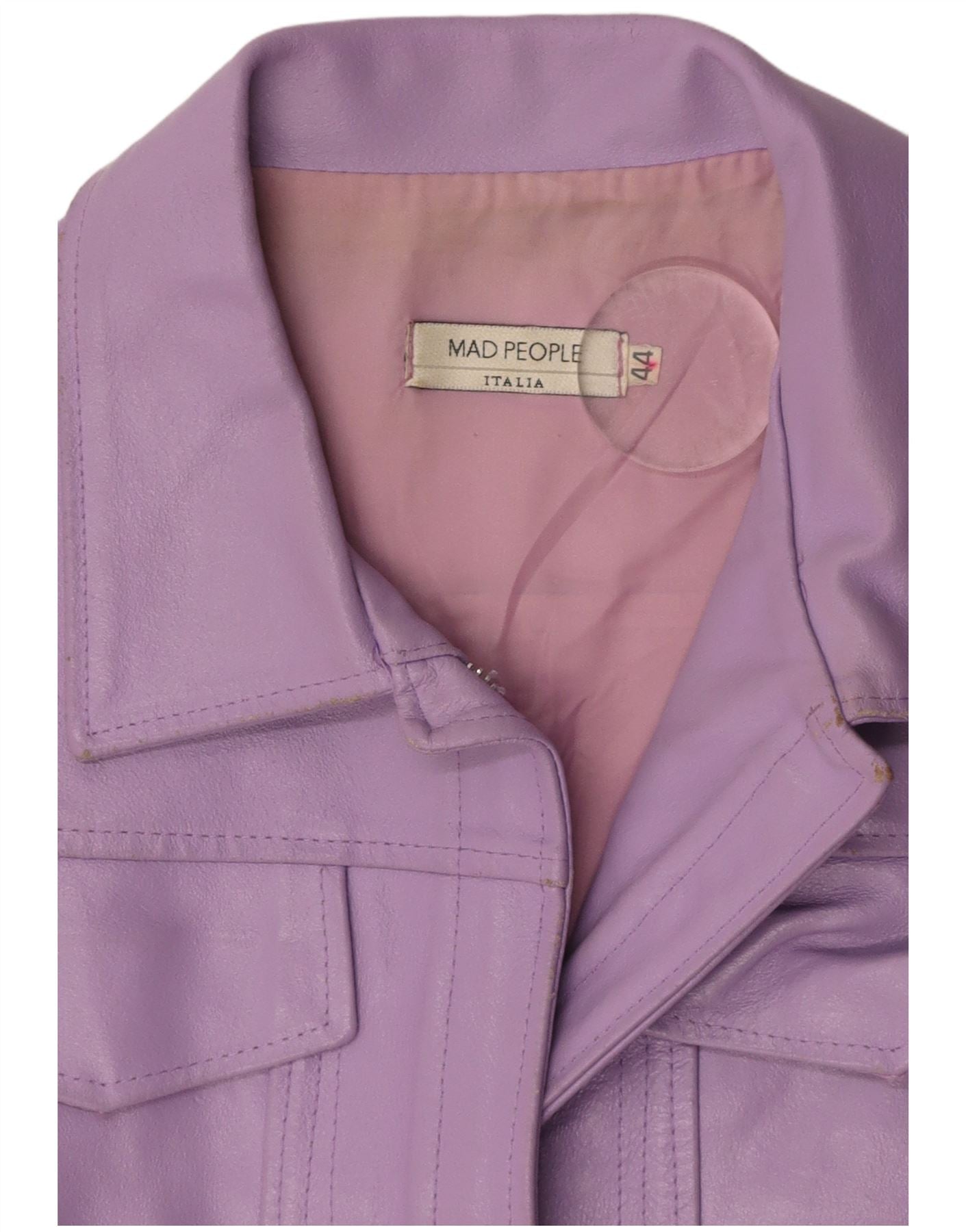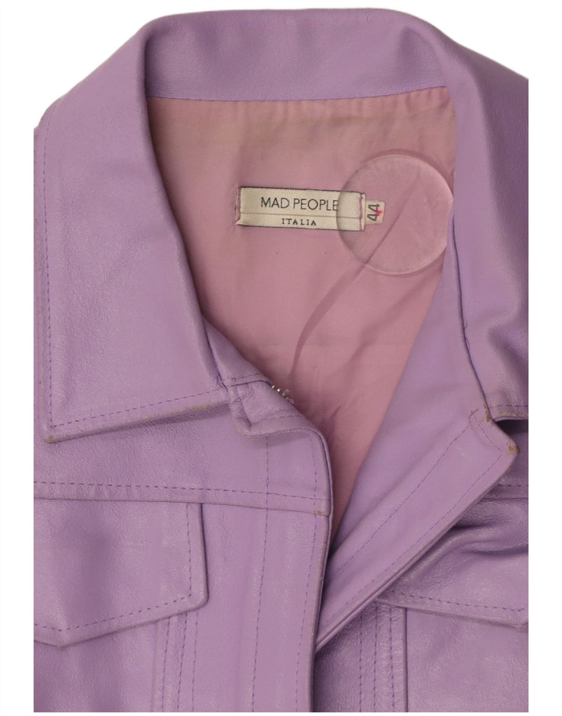 MAD PEOPLE Womens Crop Leather Jacket IT 44 Medium Purple Leather