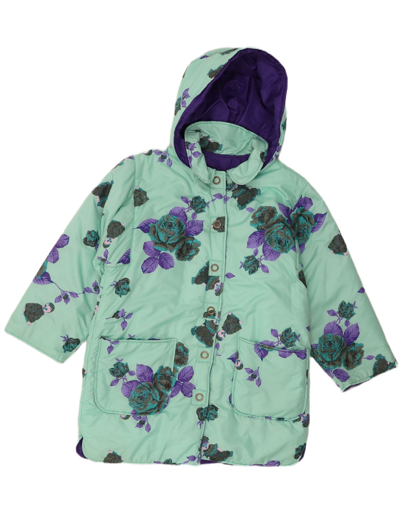 Magil Womens Hooded Padded Coat UK 16 Large Green Floral Polyester