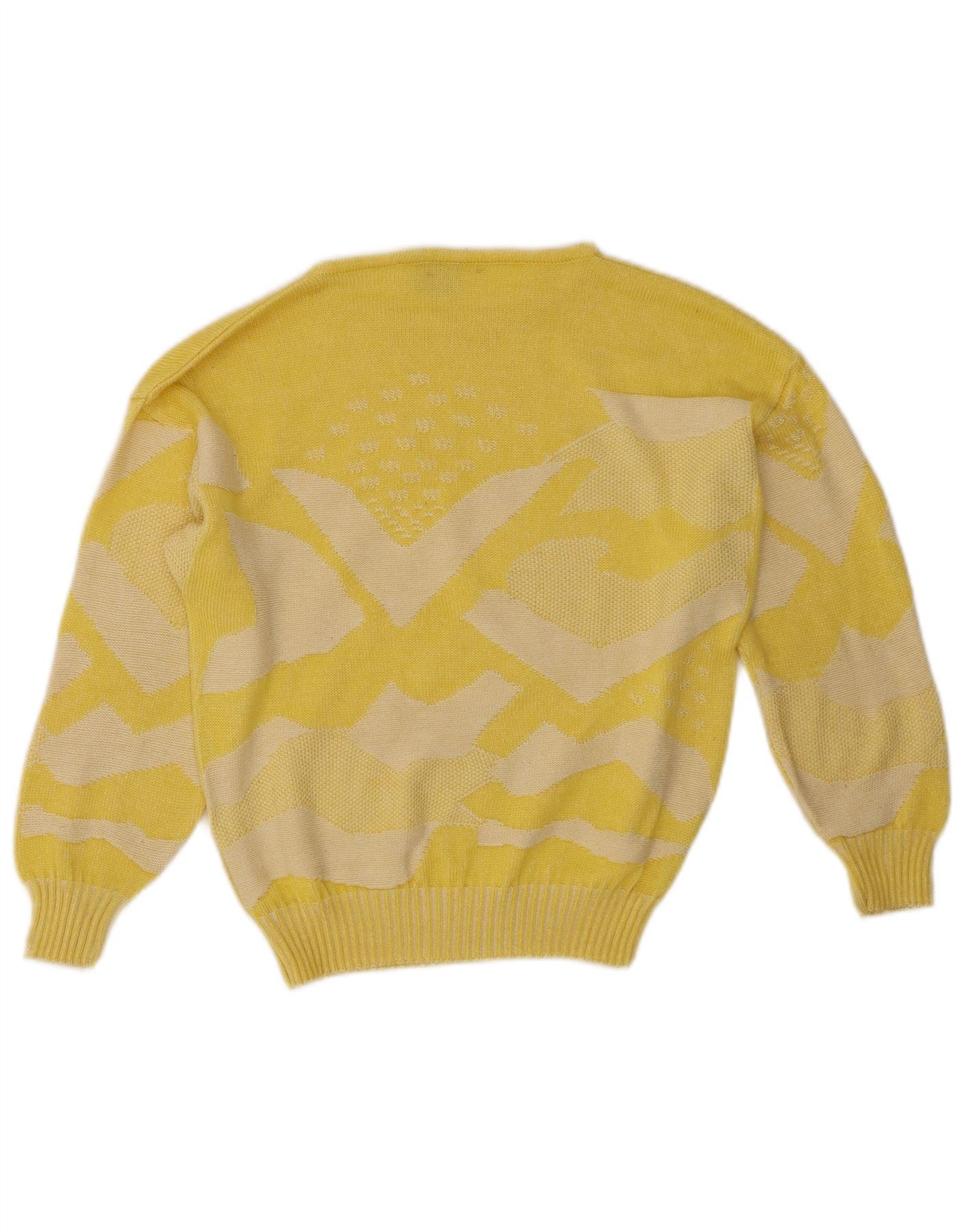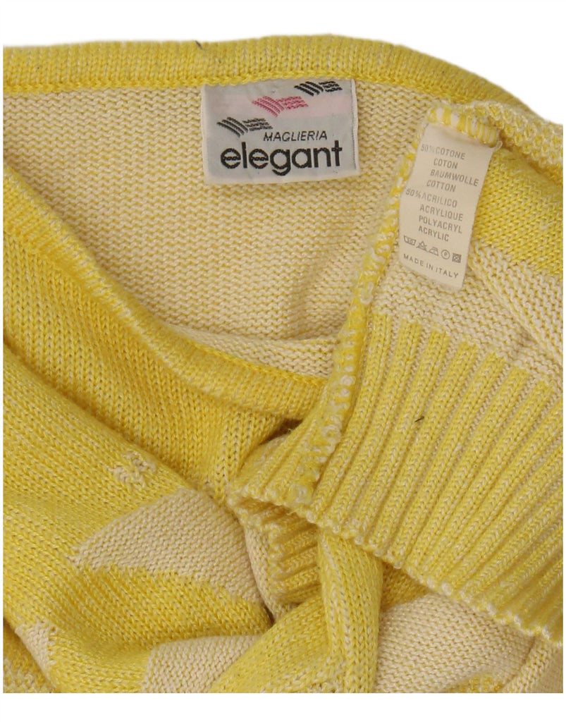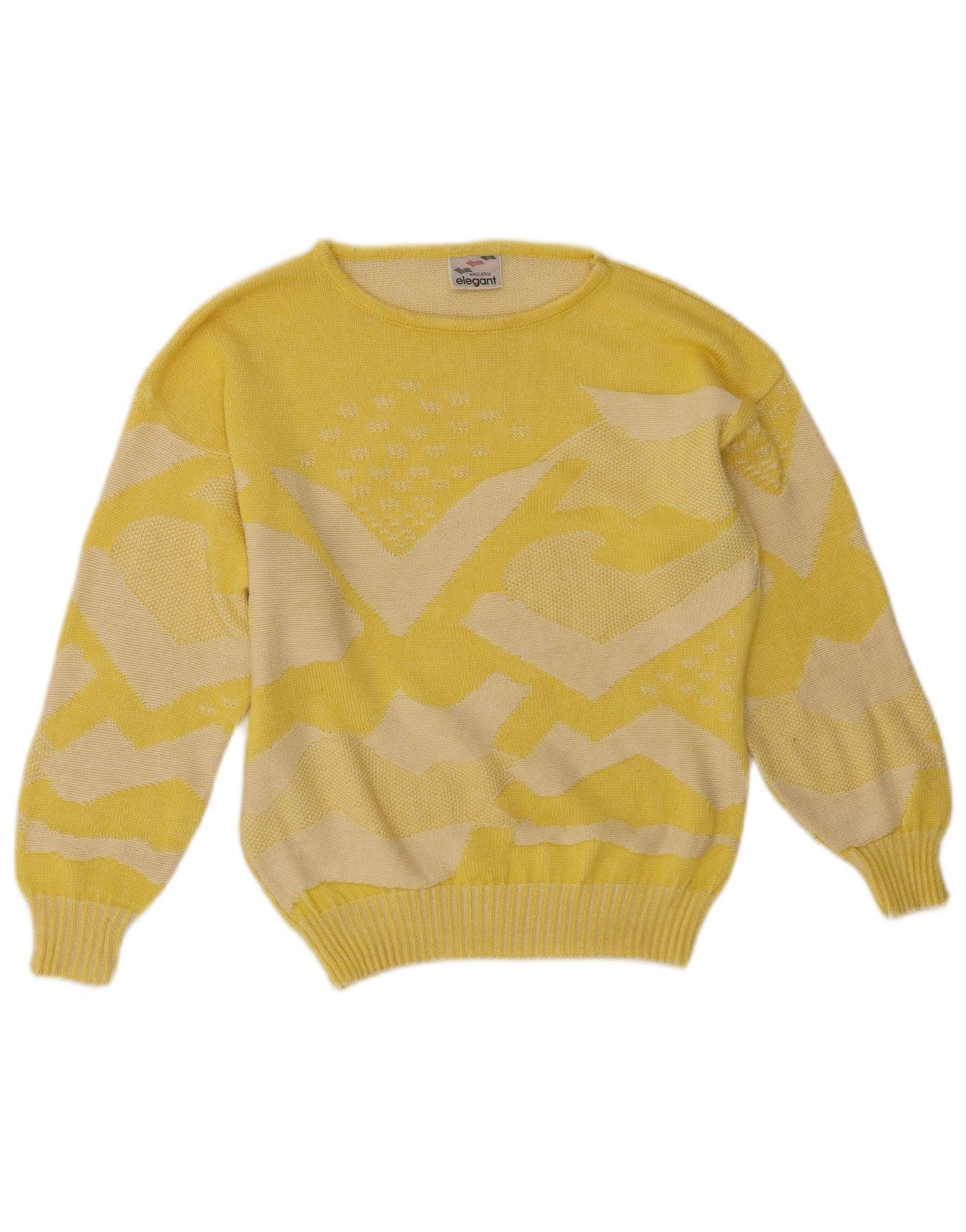 MAGLIERIA Womens Boat Neck Jumper Sweater UK 14 Medium Yellow Geometric