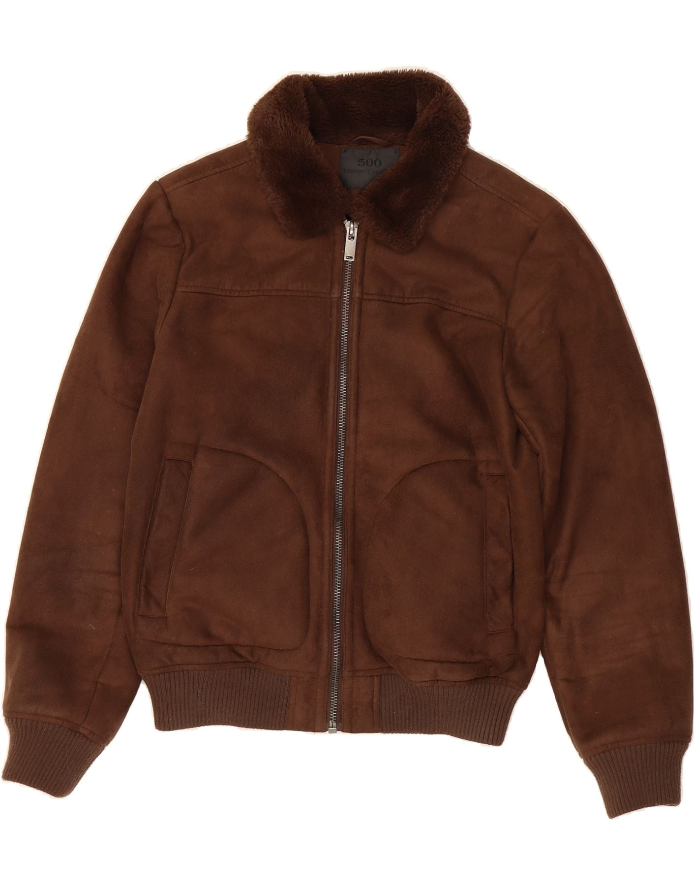 MAISON CINQCENT Mens Bomber Jacket UK 36 Small Brown Polyester