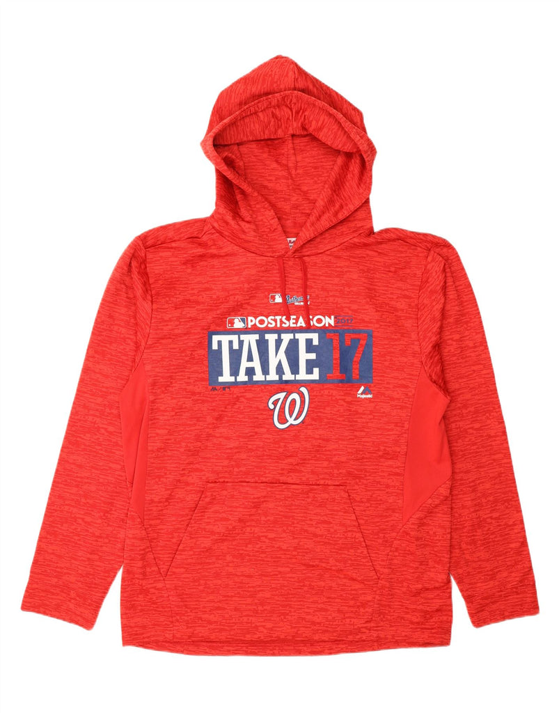 MAJESTIC Mens Washington Nationals Hoodie Jumper Medium Red Flecked