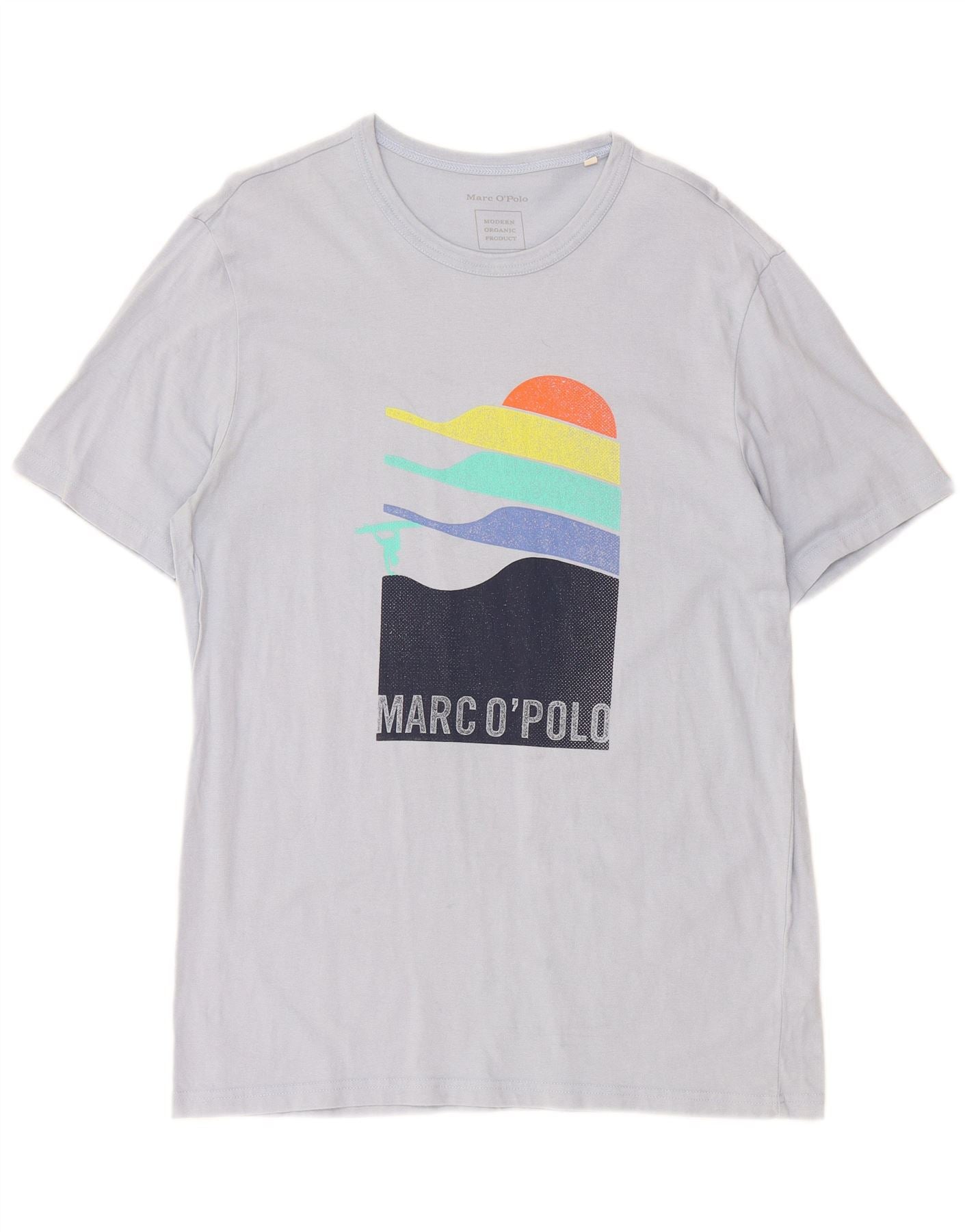 MARC O'POLO Mens Shaped Fit Graphic T-Shirt Top Large Blue Cotton