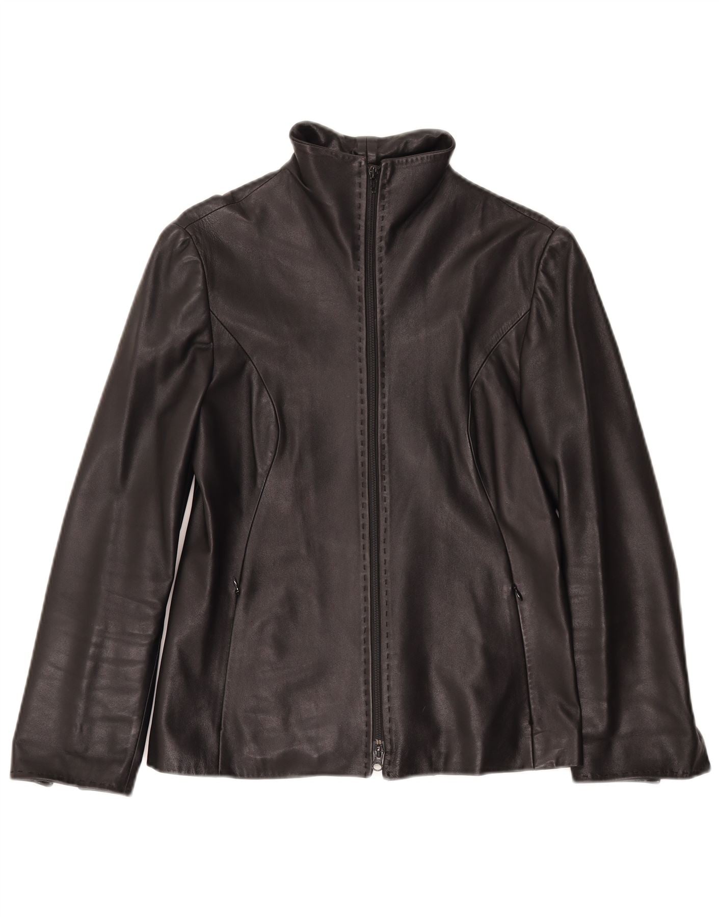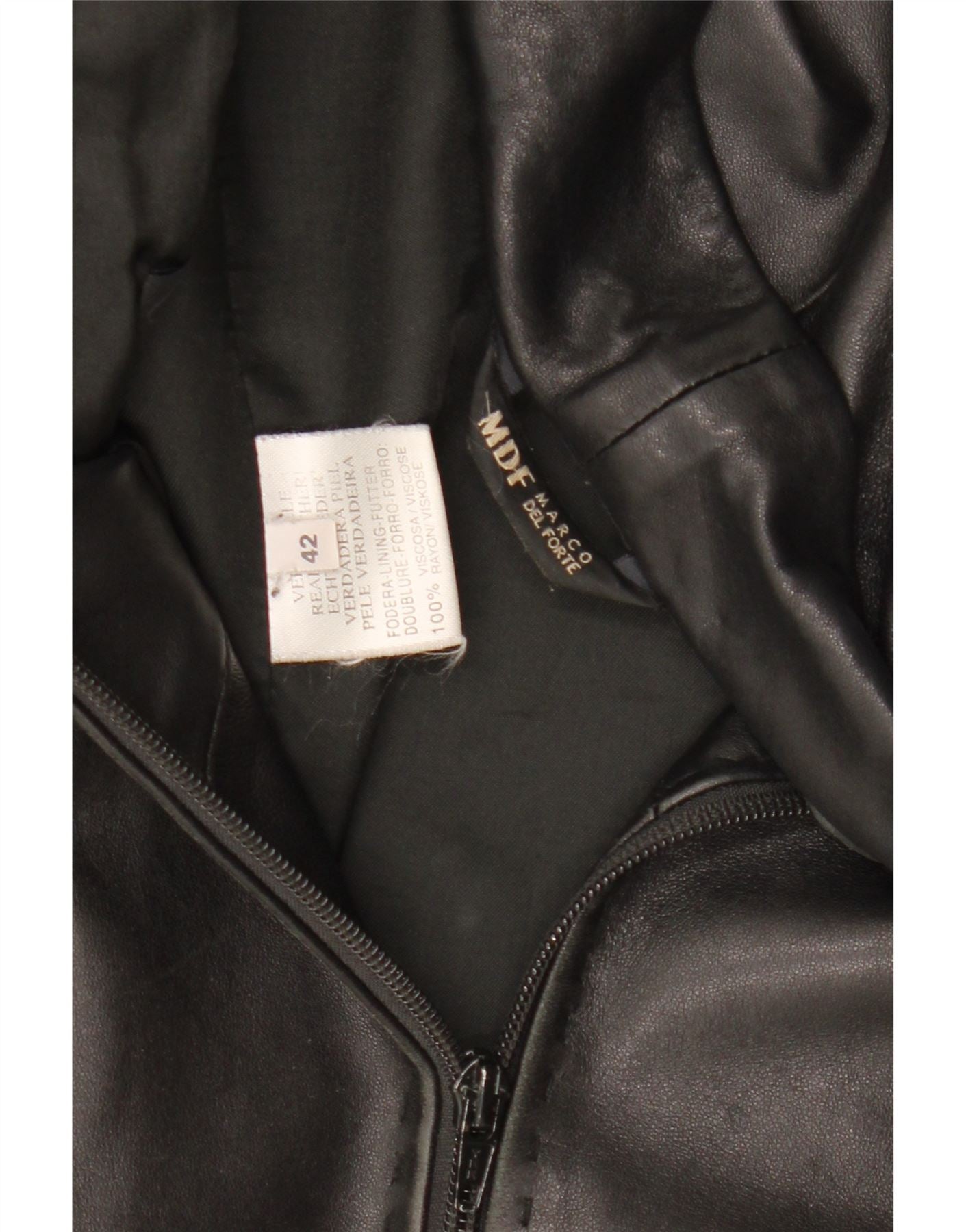 MARCO DEL FORTE Womens Leather Jacket IT 42 Medium Black Leather