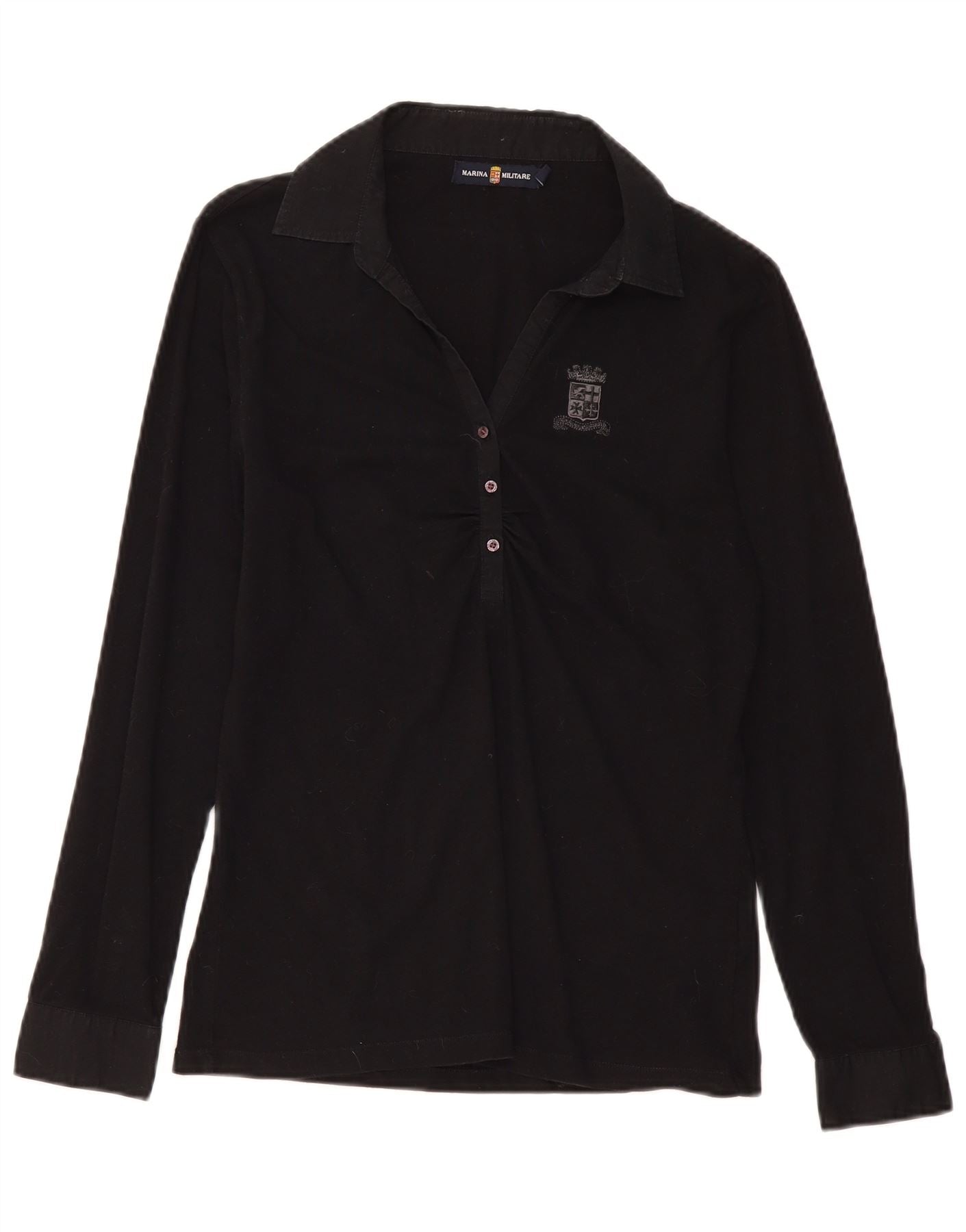 MARINA MILITARE Womens Long Sleeve Polo Shirt UK 18 XL Black Cotton
