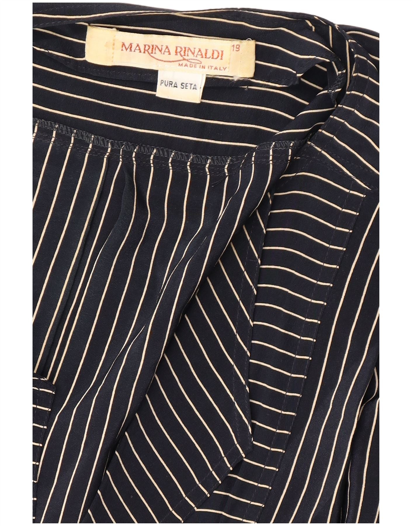 MARINA RINALDI Womens A-Line Dress Size 19 Small Navy Blue Pinstripe Silk