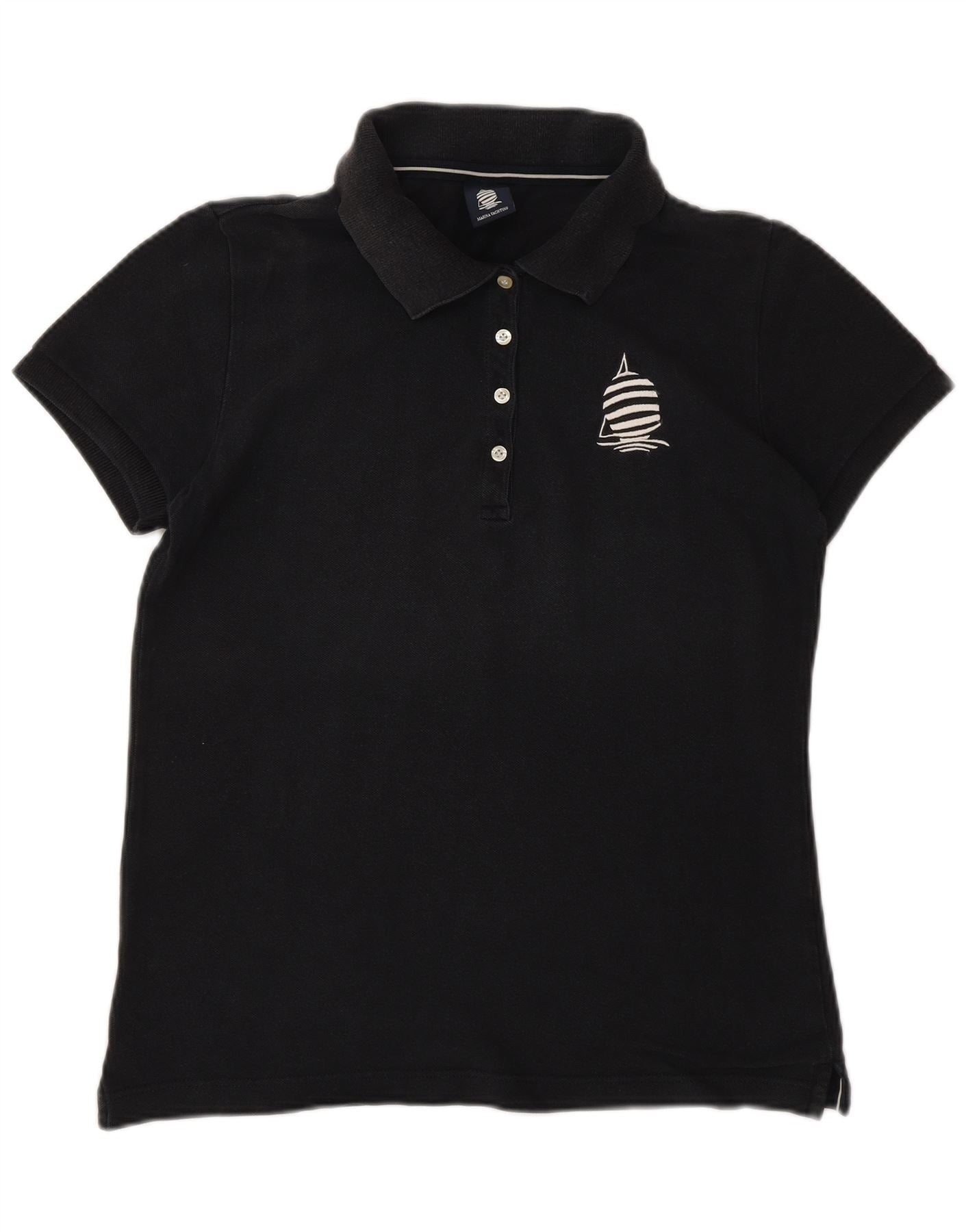 MARINA YACHTING Womens Polo Shirt UK 14 Large Black Cotton