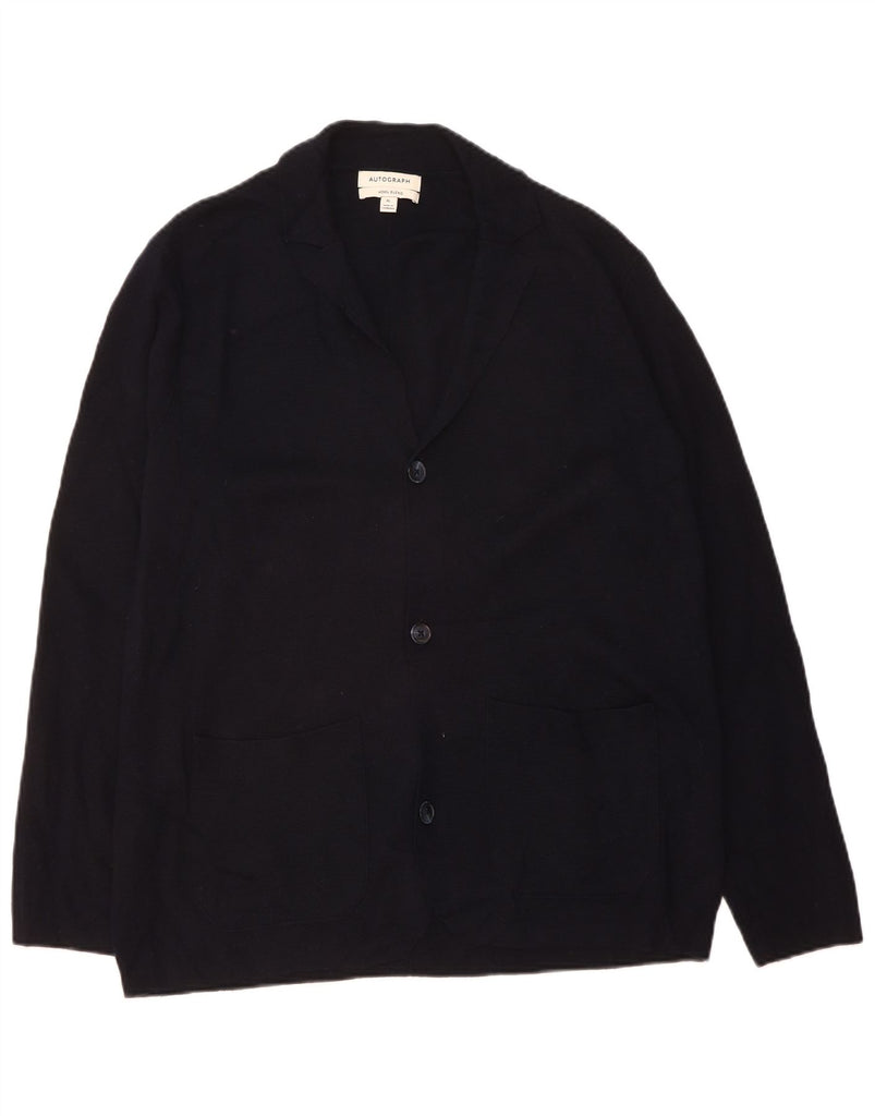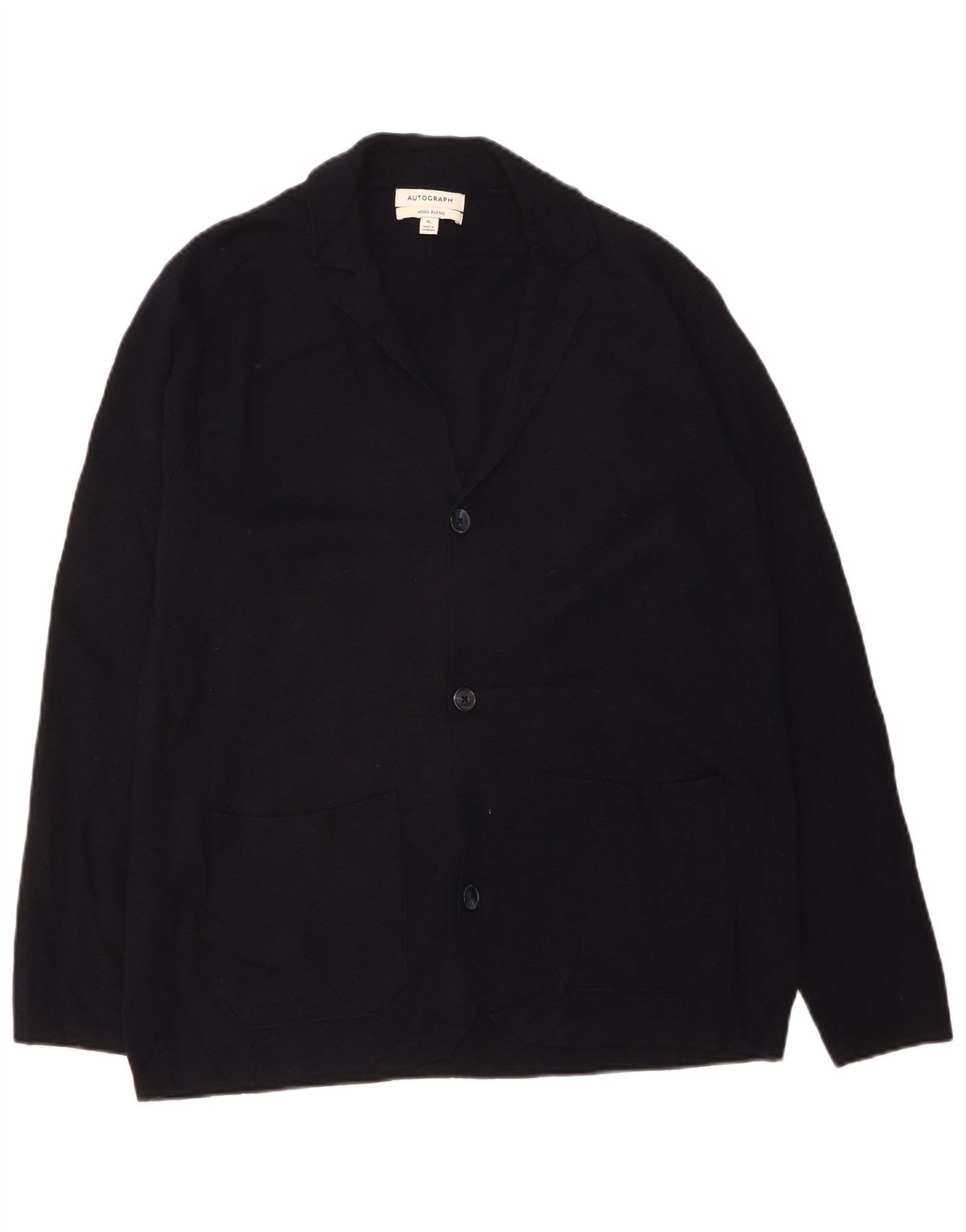 MARKS & SPENCER Mens Autograph Cardigan Sweater XL Navy Blue Wool
