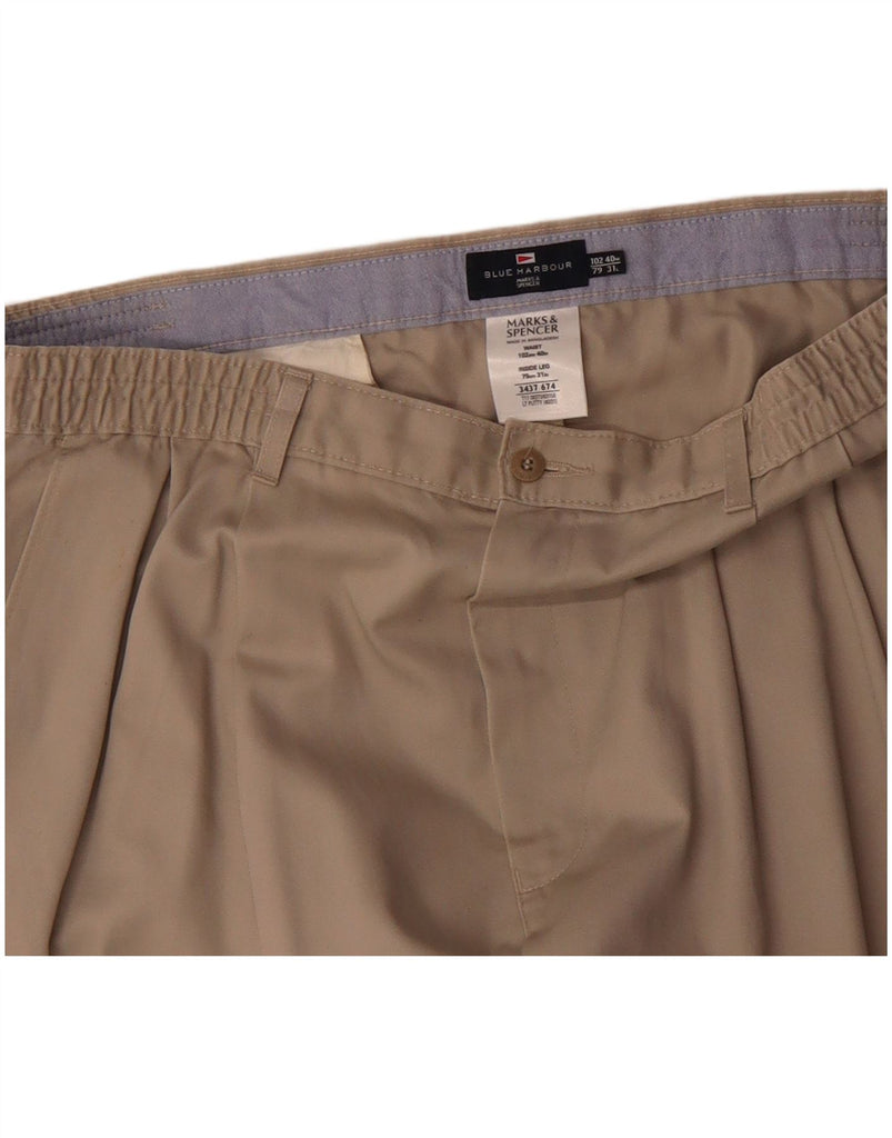 MARKS & SPENCER Mens Blue Harbour Pegged Chino Trousers W40 L31 Beige