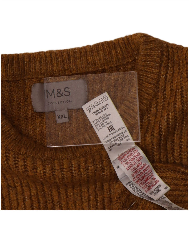 MARKS & SPENCER Mens Crew Neck Jumper Sweater 2XL Brown Acrylic